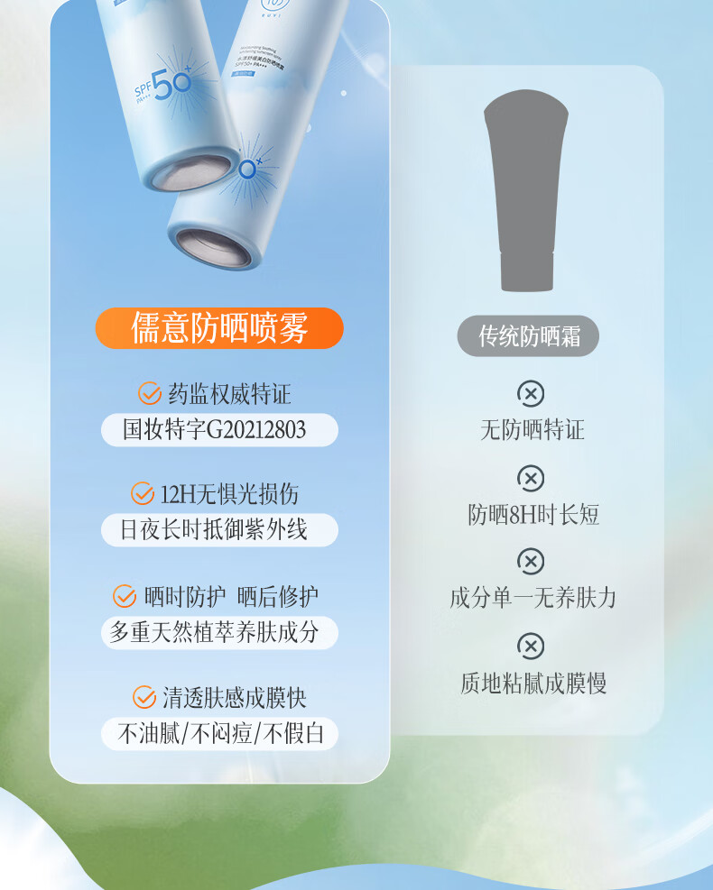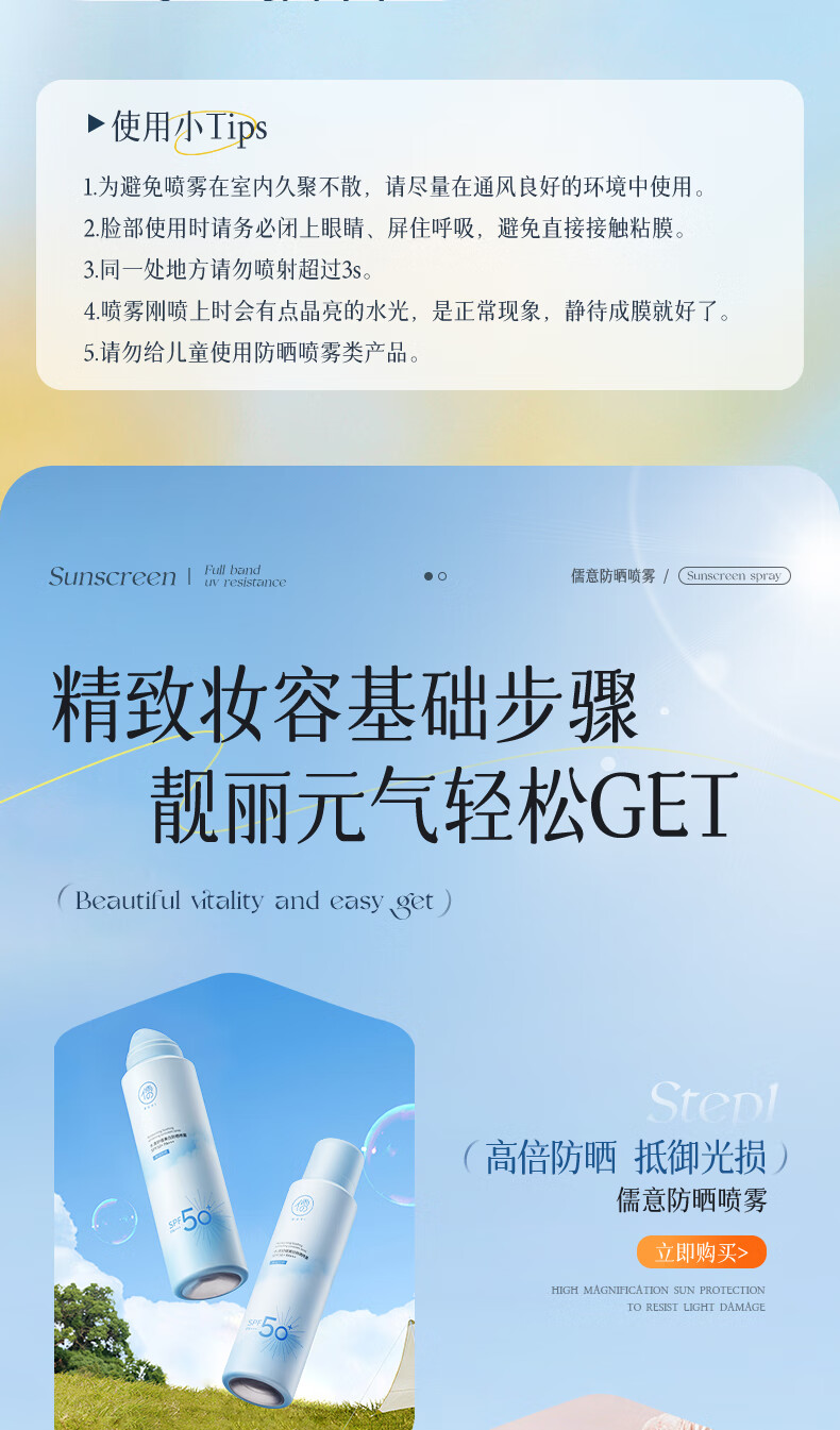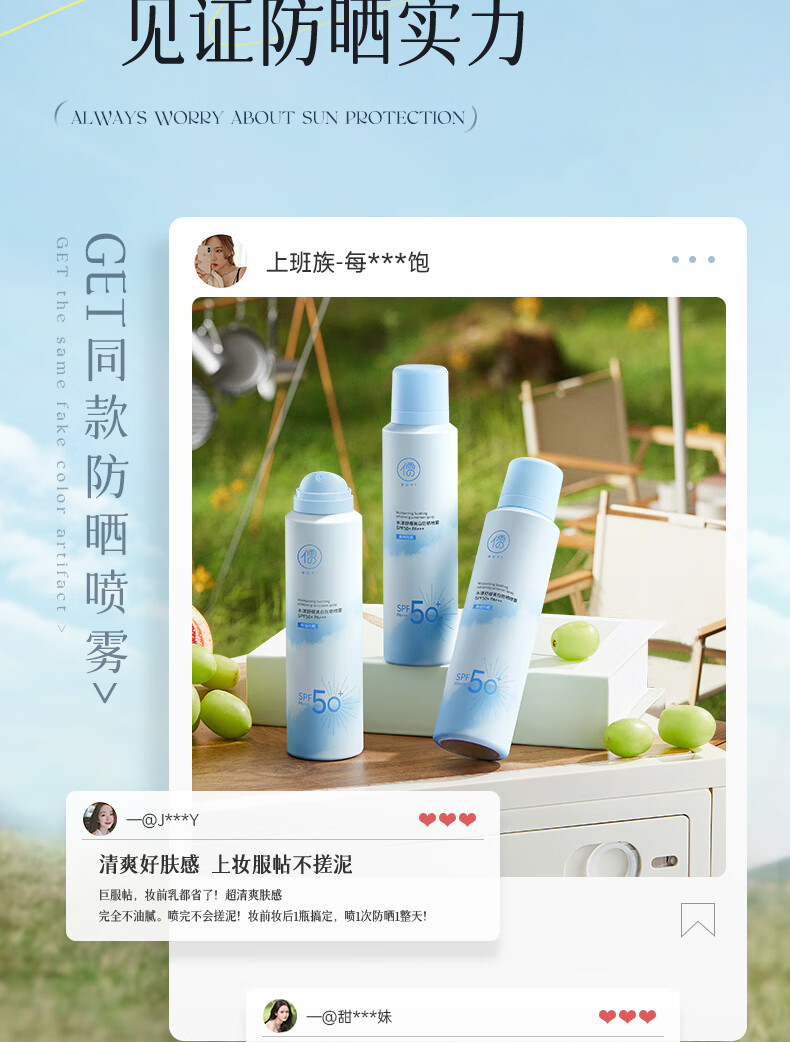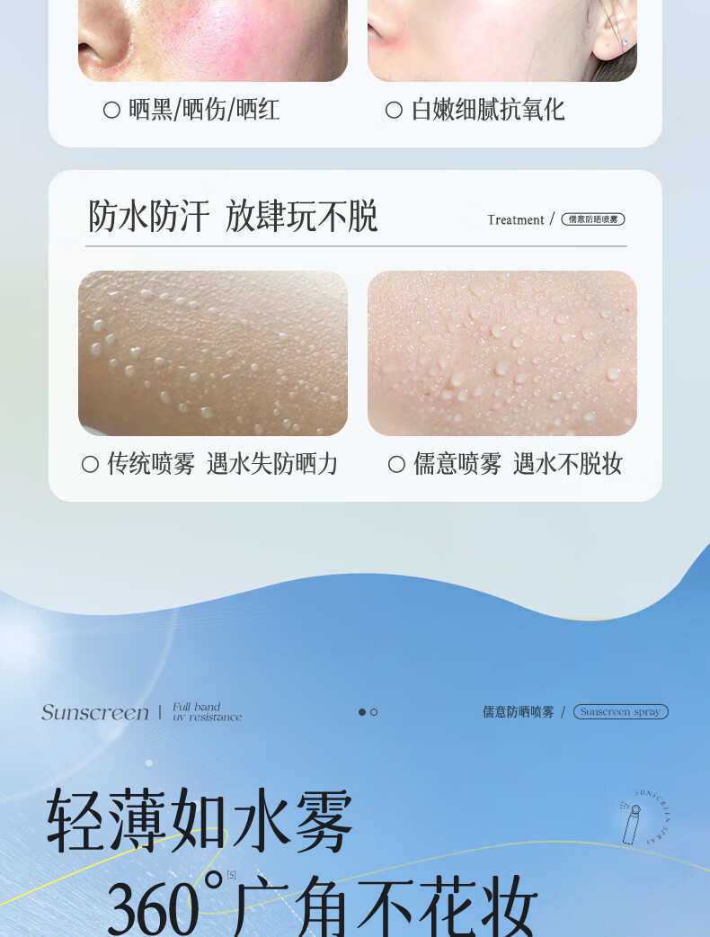 防晒喷雾防水防汗持久紫外线遮瑕美白提亮肤色三合一男女士防晒霜