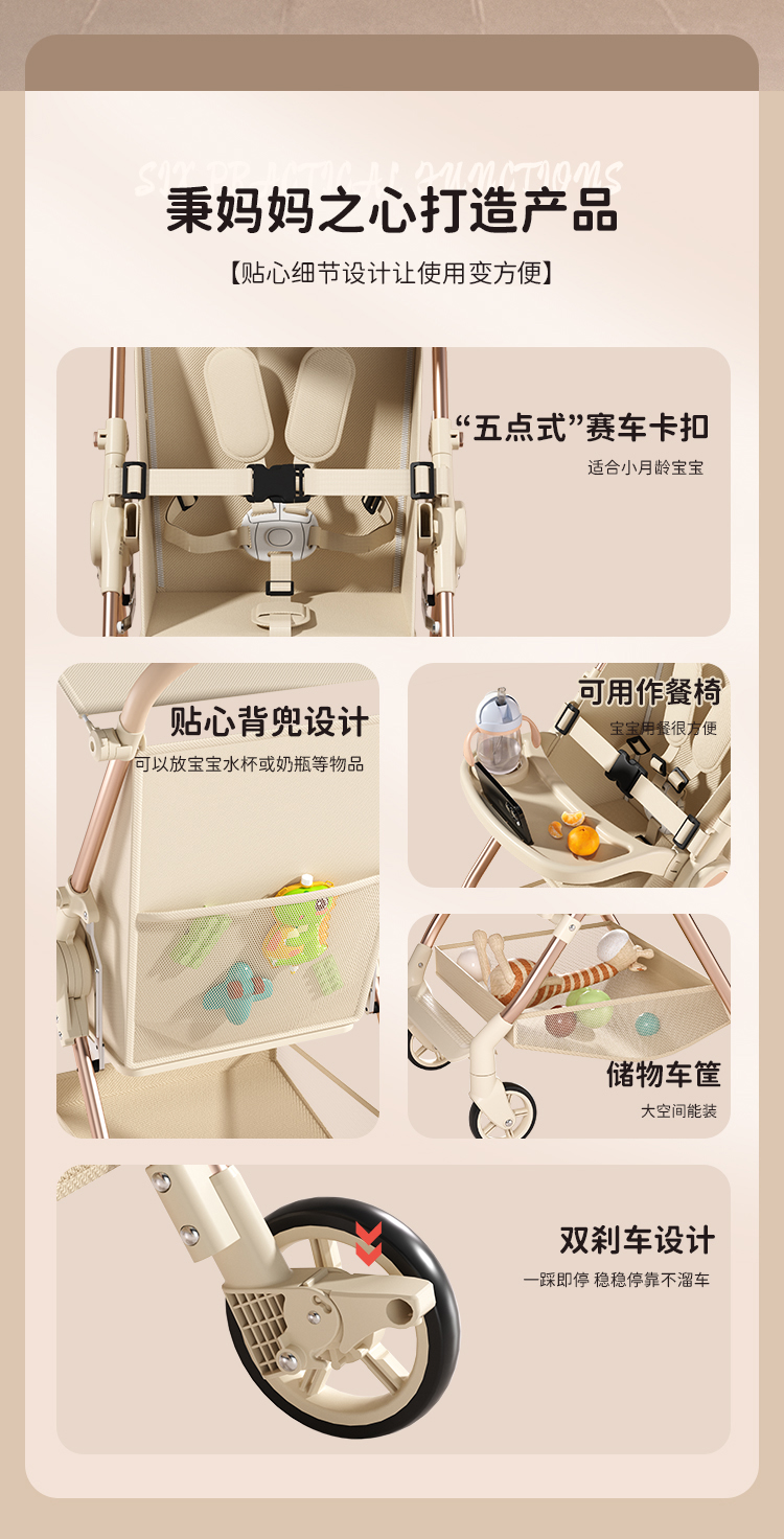 - ¥158.00高配版-卡其色【可拆卸餐盘+不可躺+五点式安全带】