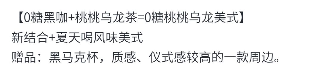 星巴克派克市场黑咖啡+桃桃乌龙茶=0糖桃桃乌龙美式夏季提神解渴