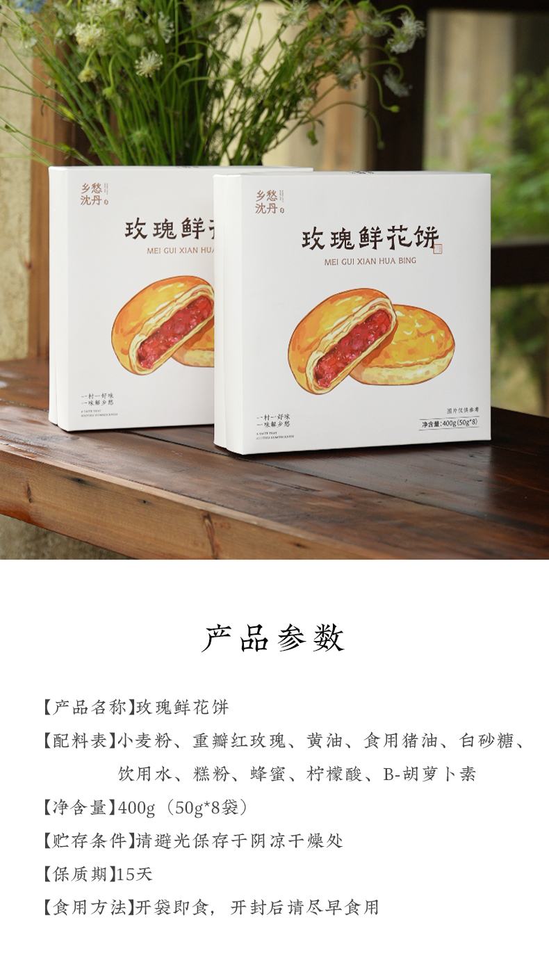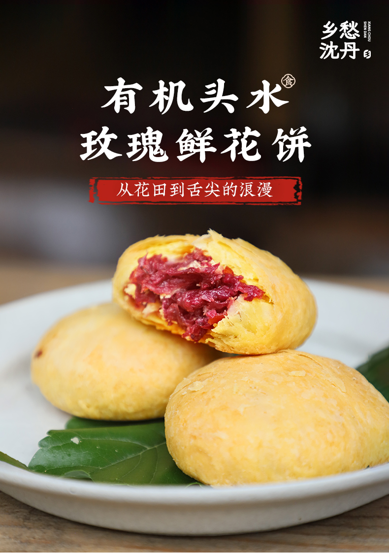 玫瑰鲜花饼乡愁甄选云南重瓣玫瑰皮薄馅足早餐点心下午茶手作新鲜