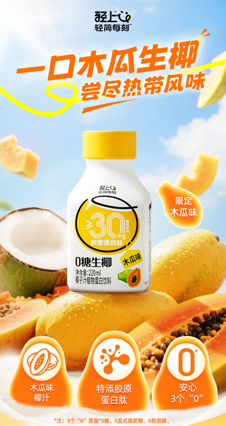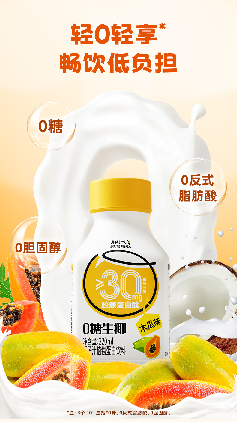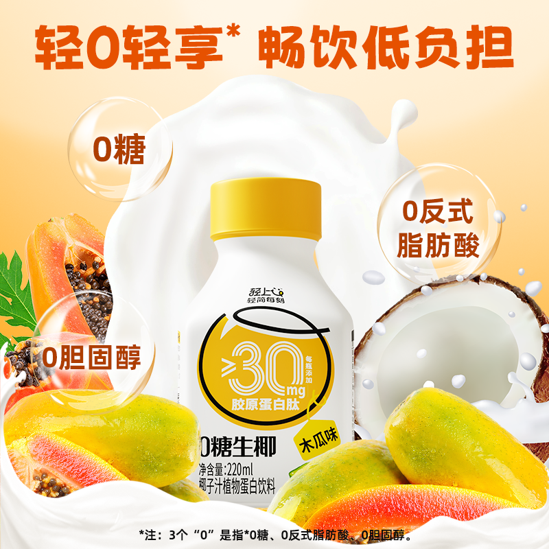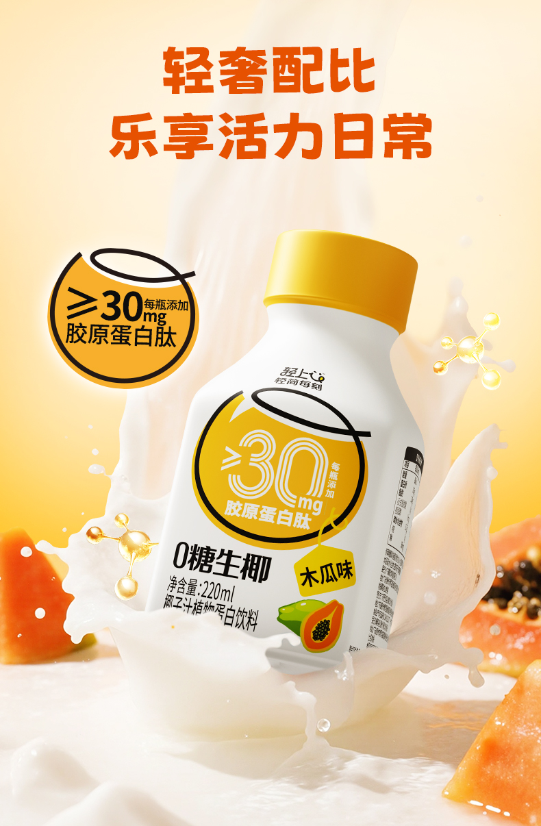 木瓜0糖生椰添加胶原蛋白肽0反式脂肪酸椰乳椰子汁整箱装营养好喝