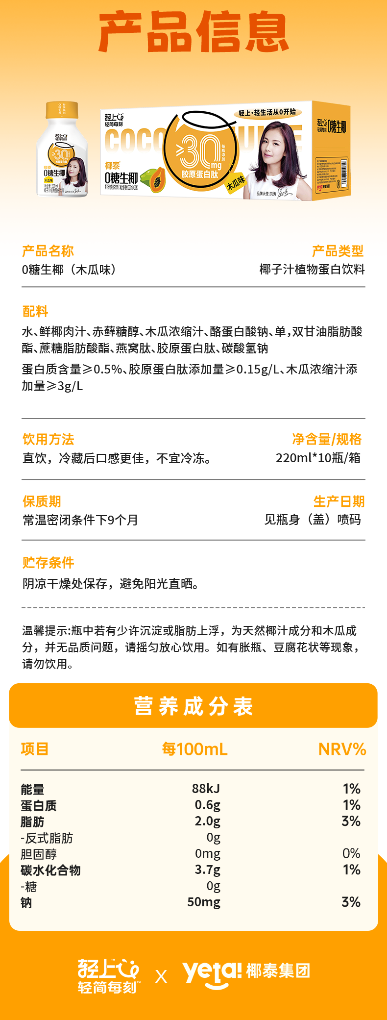 0糖生椰(木瓜味)220ml*10瓶