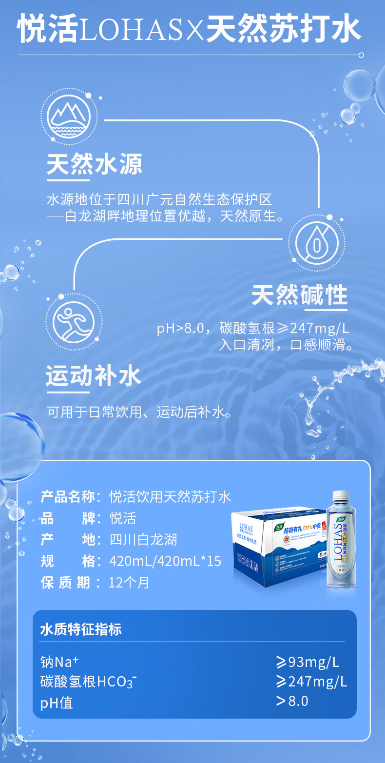 - ¥15.48悦活苏打水,420ml*6瓶