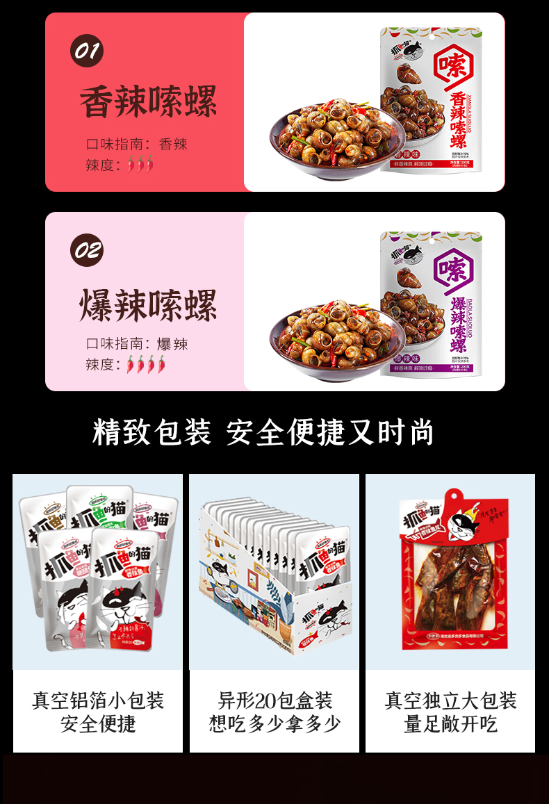 - ¥26.80爆辣嗦螺+香辣嗦螺,200g*4袋(内含24小包)
