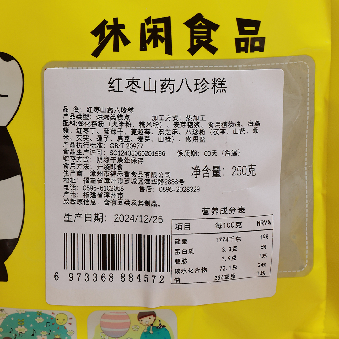 - ¥13.90【无蔗糖无防腐】红枣山药八珍糕,250g*1袋(不太够吃)