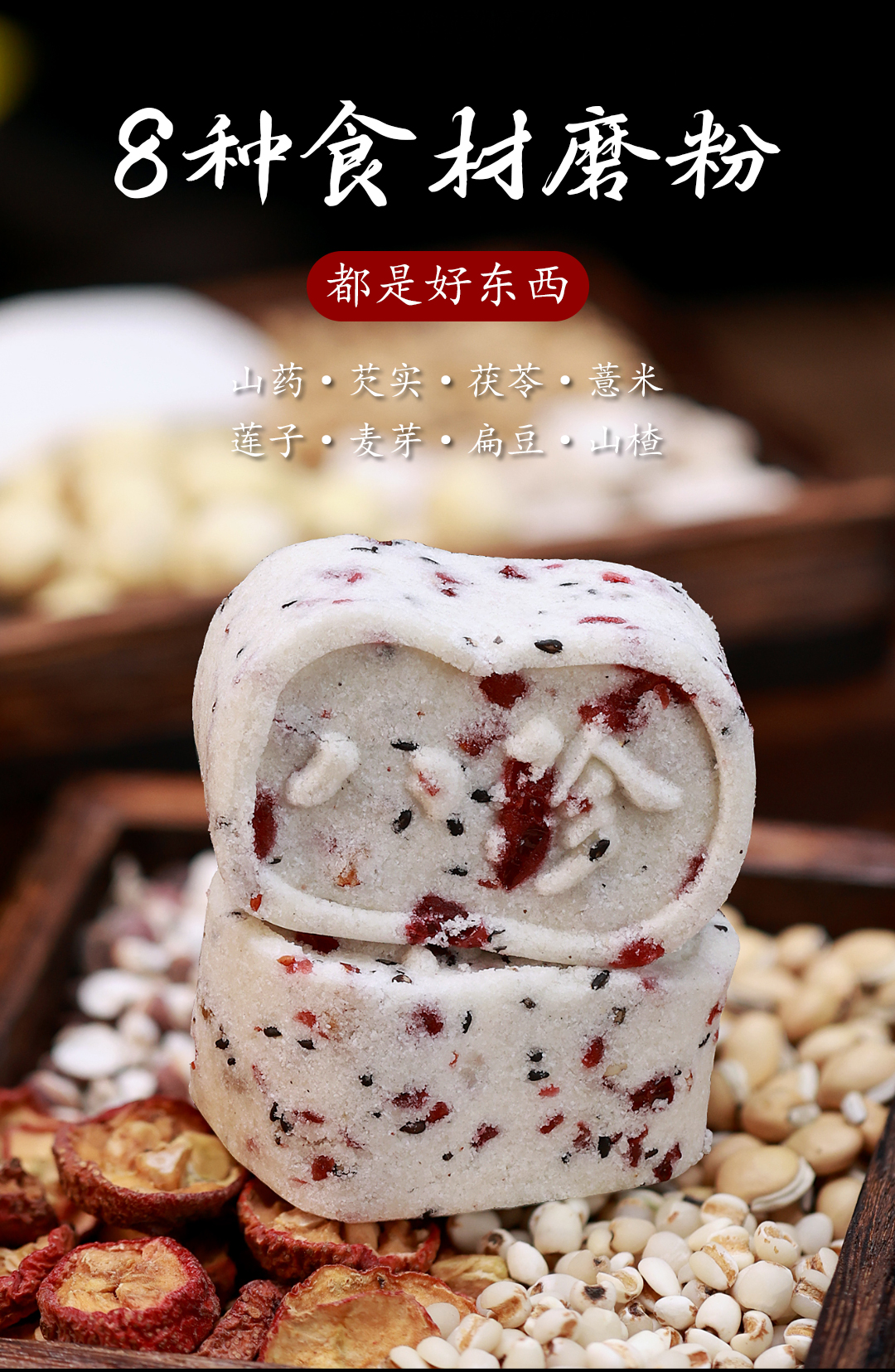- ¥15.90【无蔗糖无防腐】坚果茯苓八珍糕,250g*1袋(不太够吃)