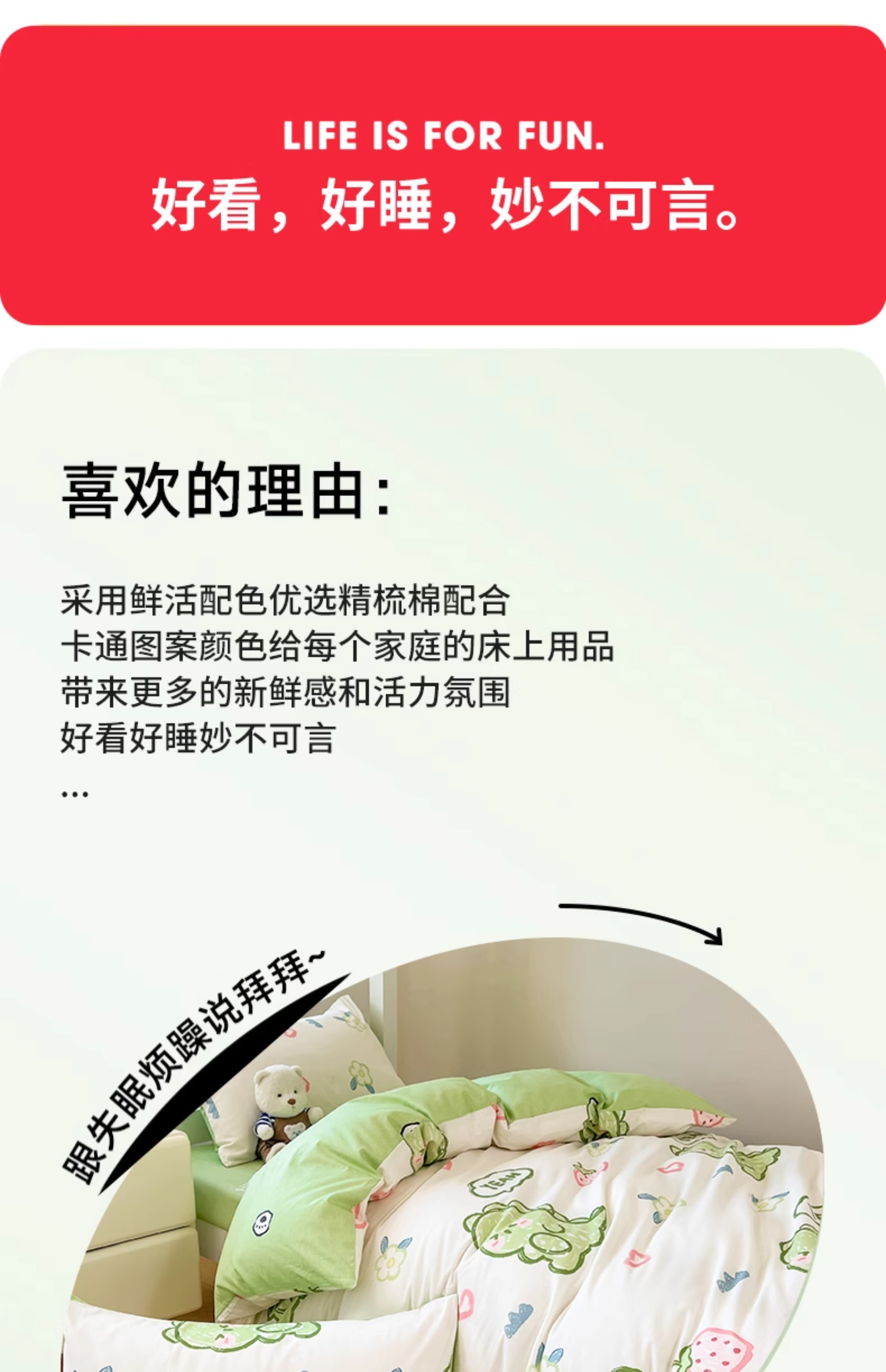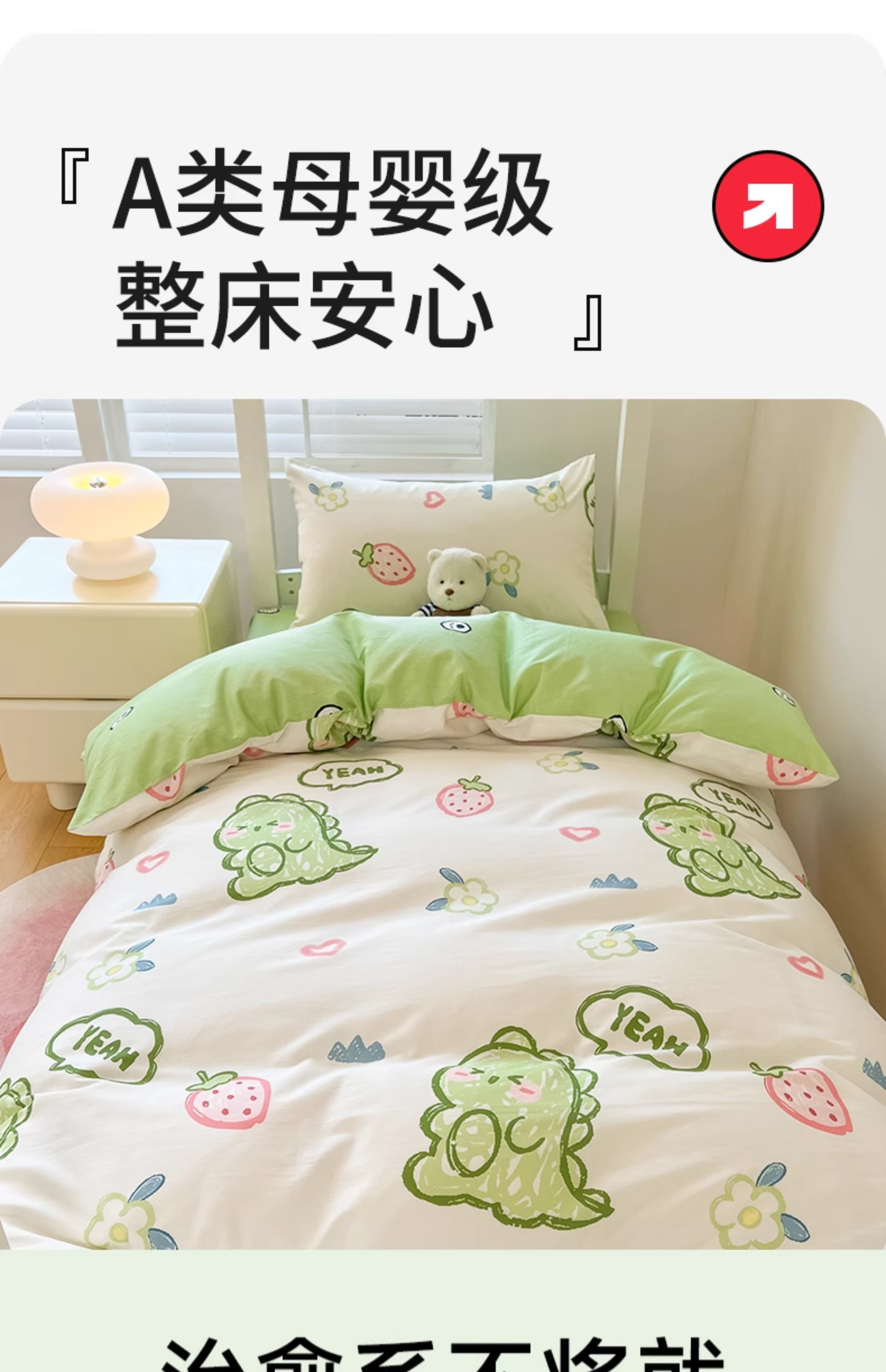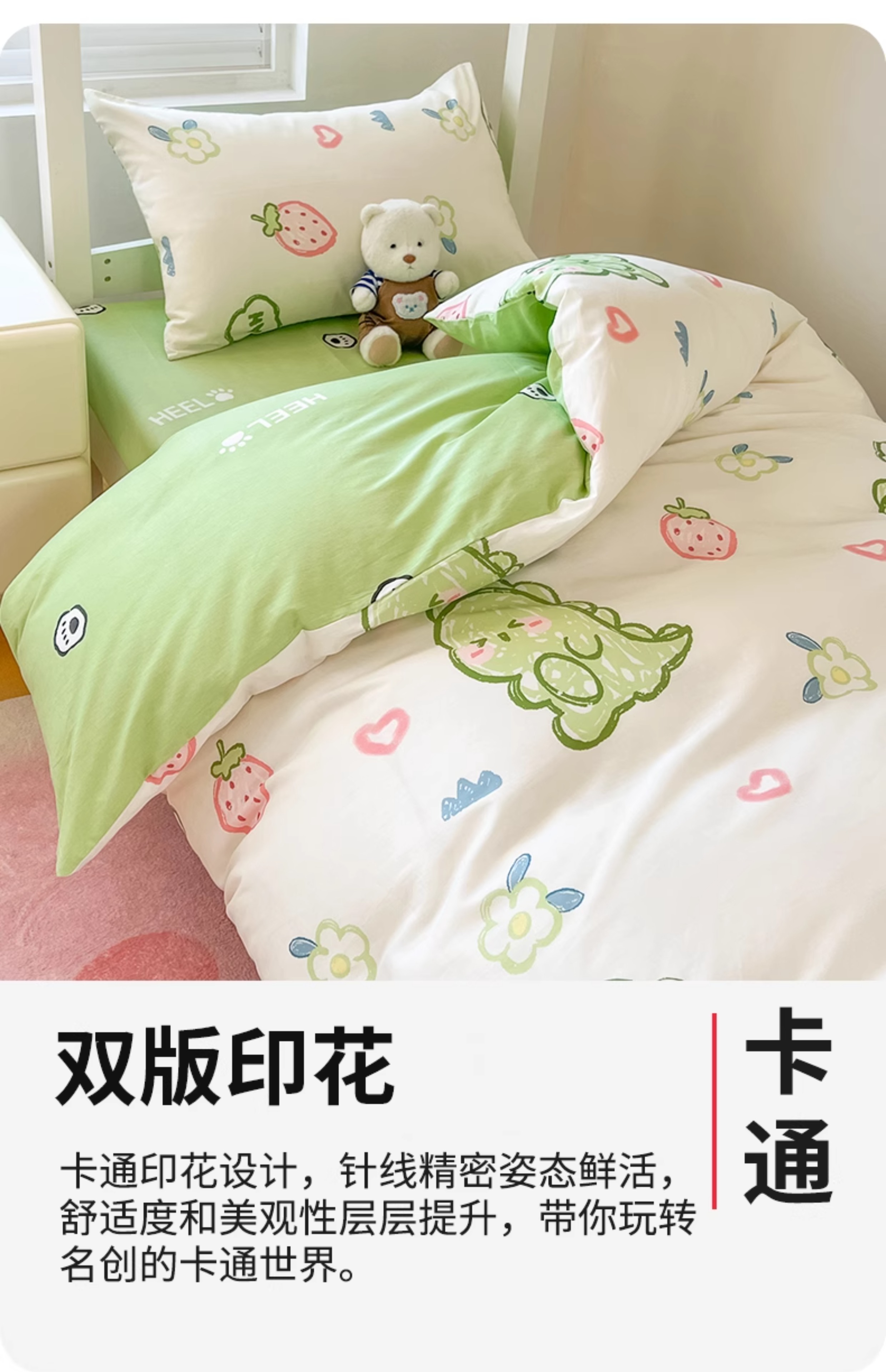 - ¥201.52兔可儿【官方鉴定✅全部产品通过国标质检】,0.9m学生床四件套【三件套+90x200cm床垫遮盖物】