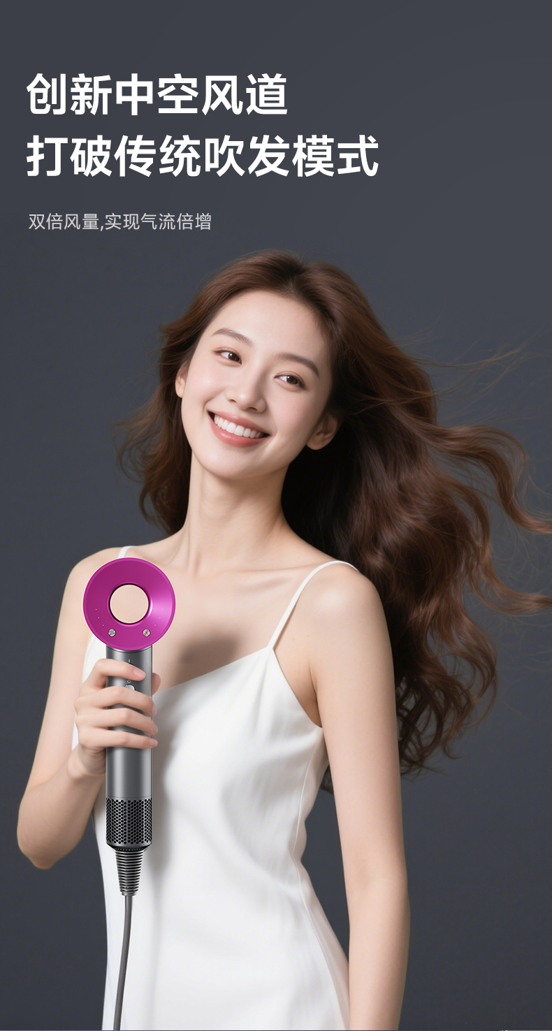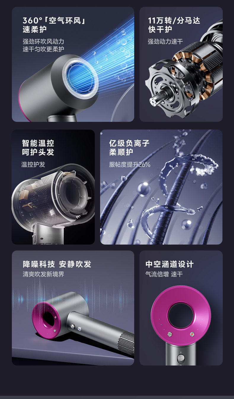 - ¥98.00玫红色,吹风机+五个风嘴+礼盒+1.8m线