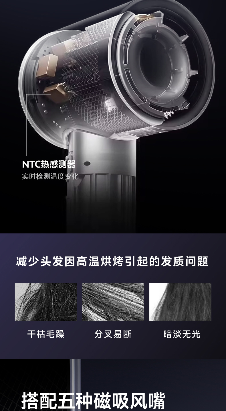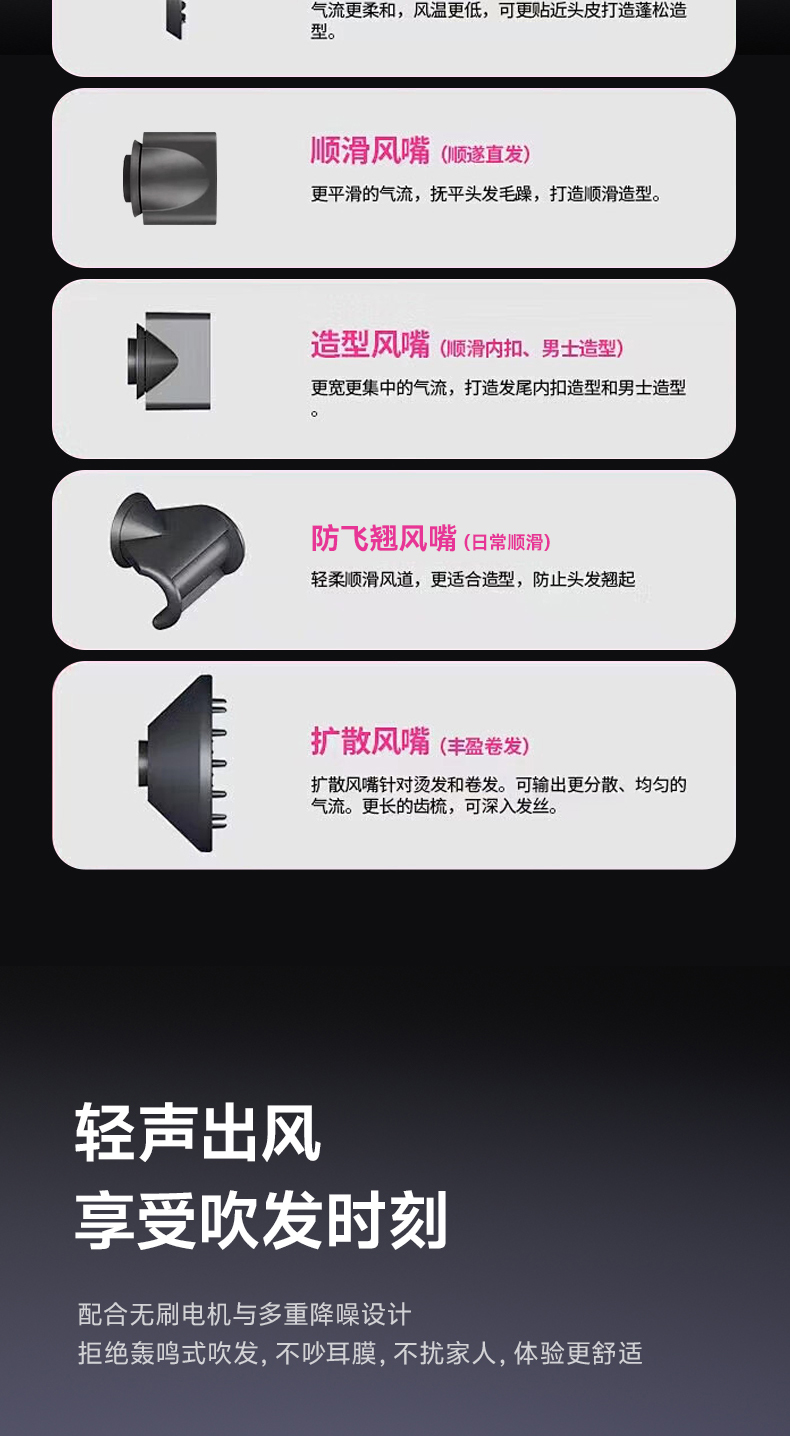 - ¥98.00太空灰,吹风机+五个风嘴+礼盒+1.8m线