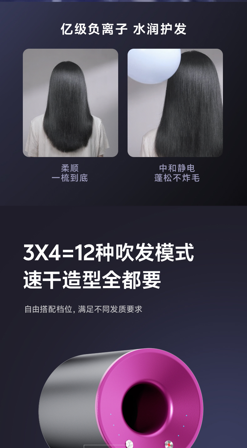 - ¥75.00玫红色,吹风机+顺滑风嘴+礼盒+1.8m线