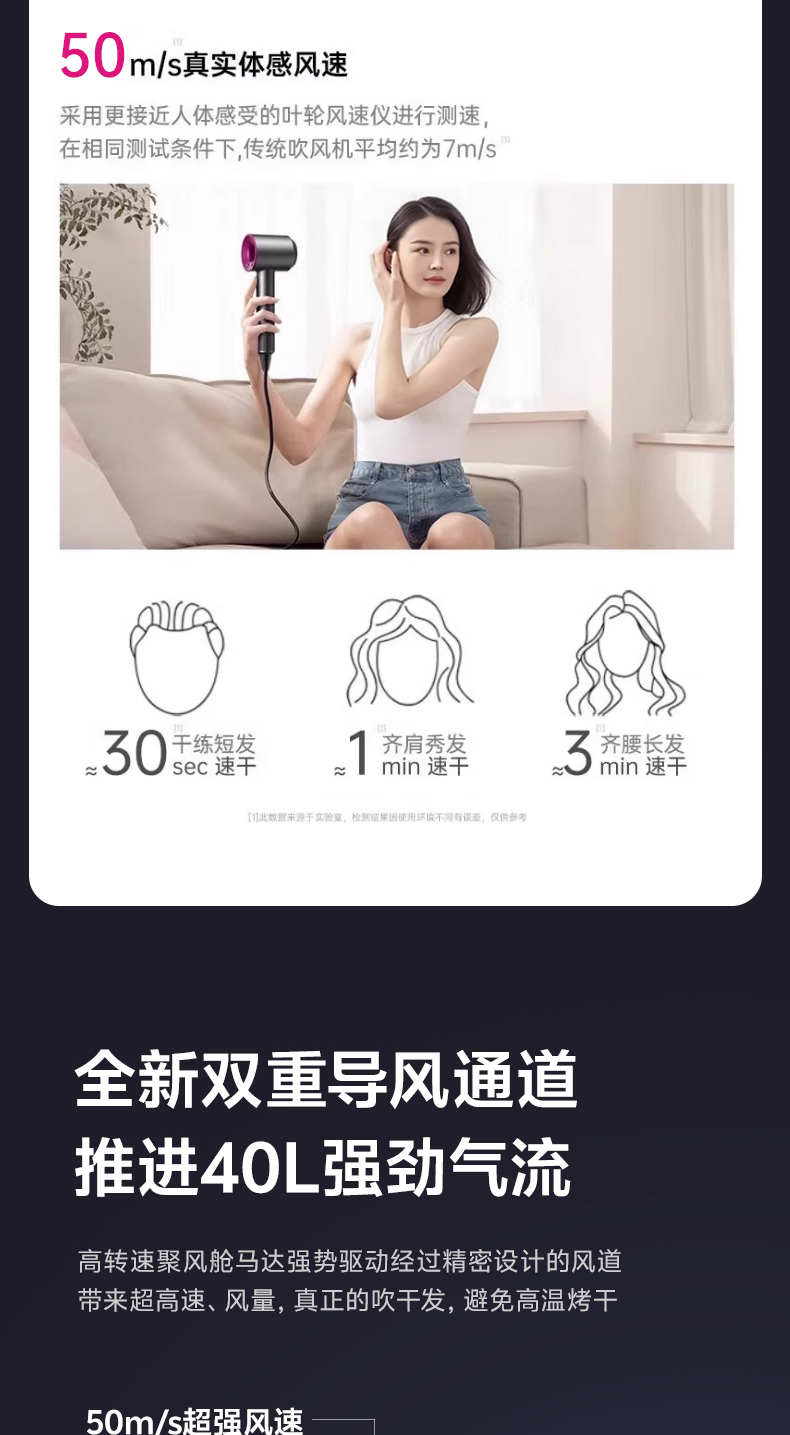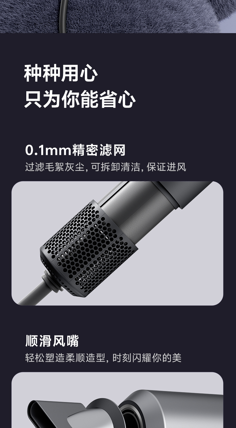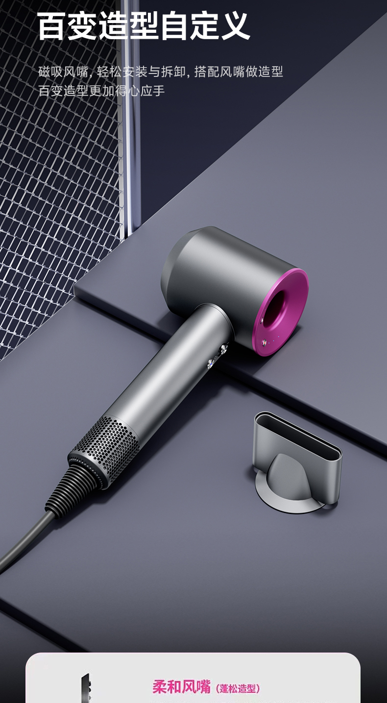 - ¥75.00太空灰,吹风机+顺滑风嘴+礼盒+1.8m线