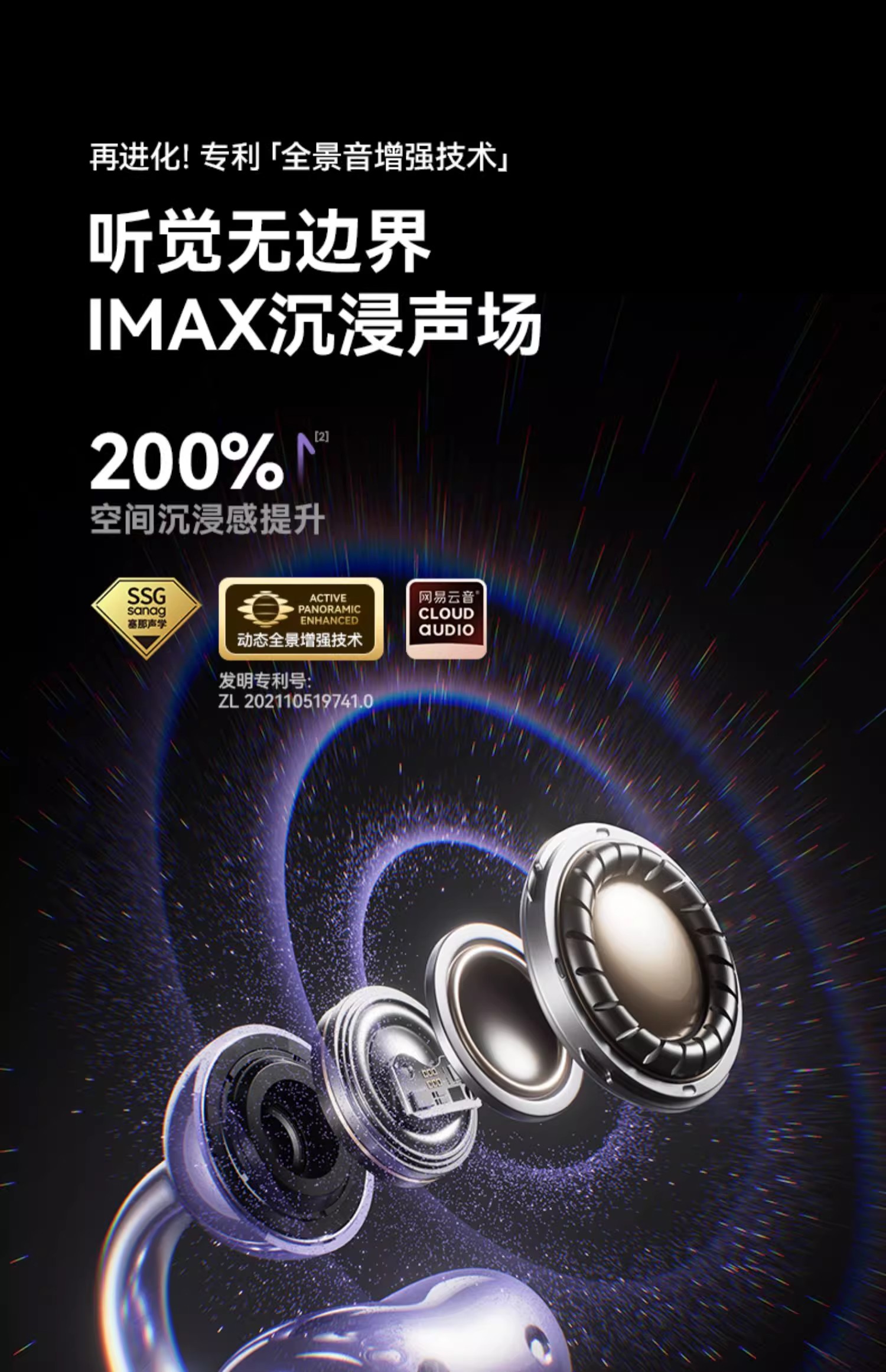 - ¥369.00【首发限定色|香槟金】网易云音乐权威认证+专利动态全景音增强技术+耳机防丢定位查找+舒适稳固佩戴+AI高清通话降噪,无耳饰/单买