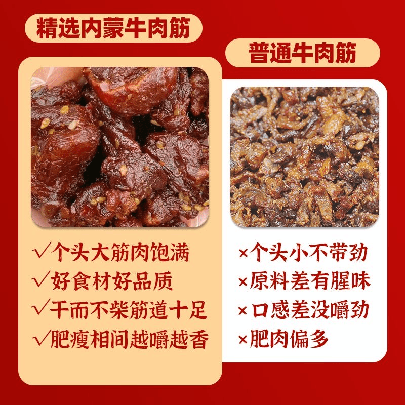 1单袋13.8元起,性价比高,多口味组合装与单口味价格相同,实惠又贴心。商品附加价值上,真空包装方便储存携带,且精选有肥有瘦有筋有肉的边角料,风味独特,是休闲零食的优质之选 。