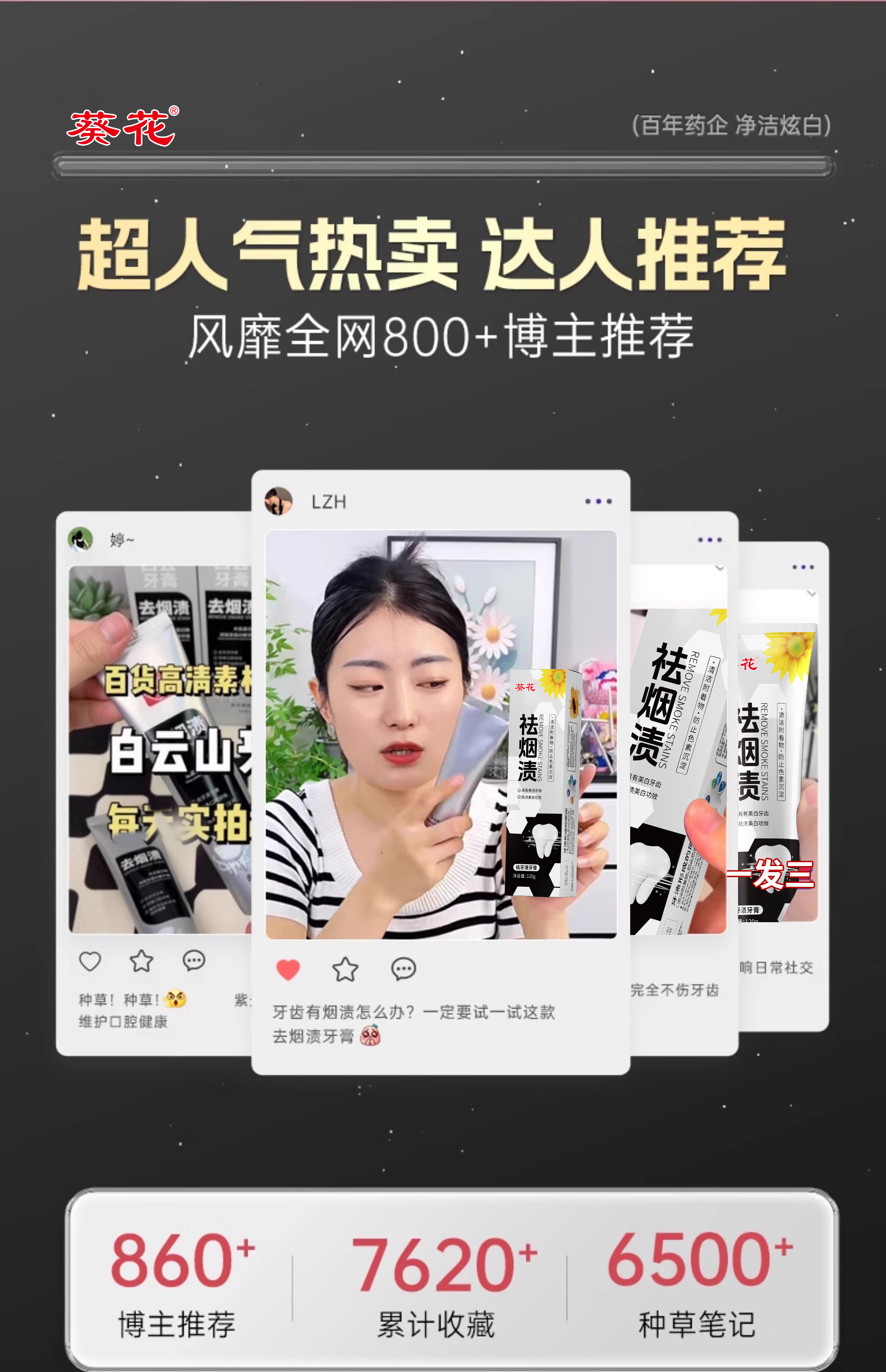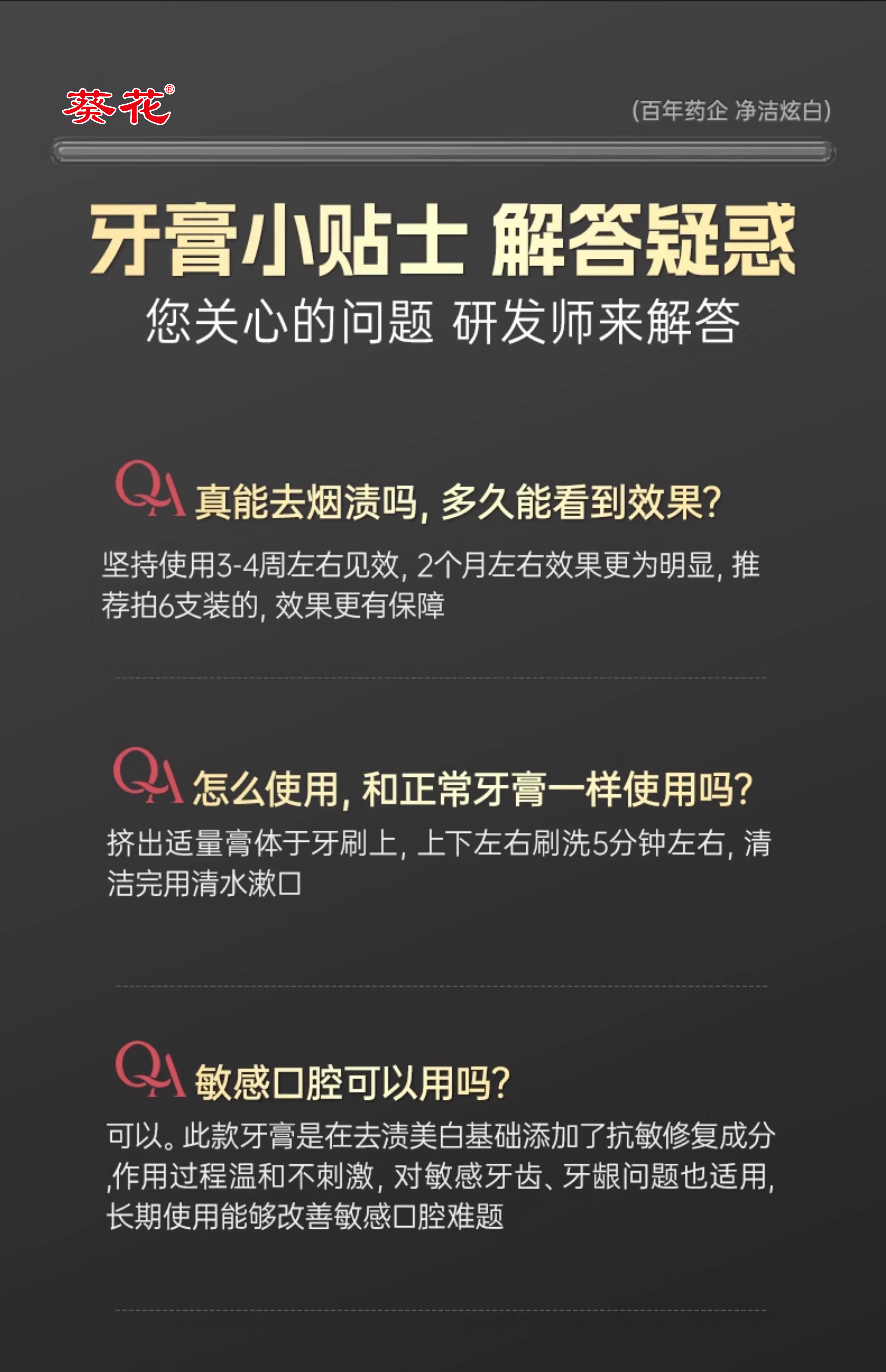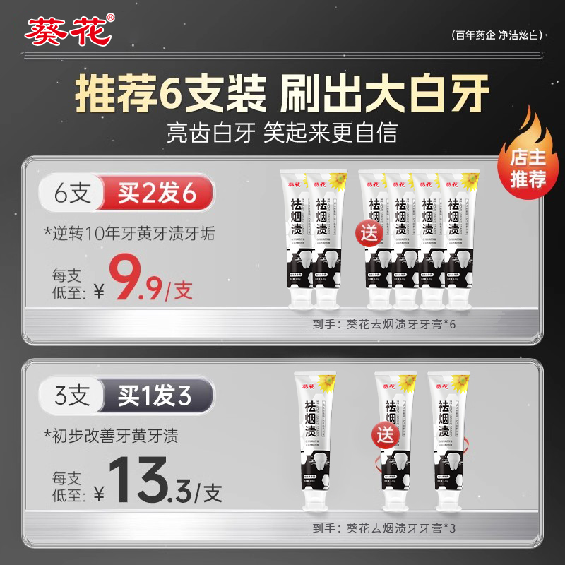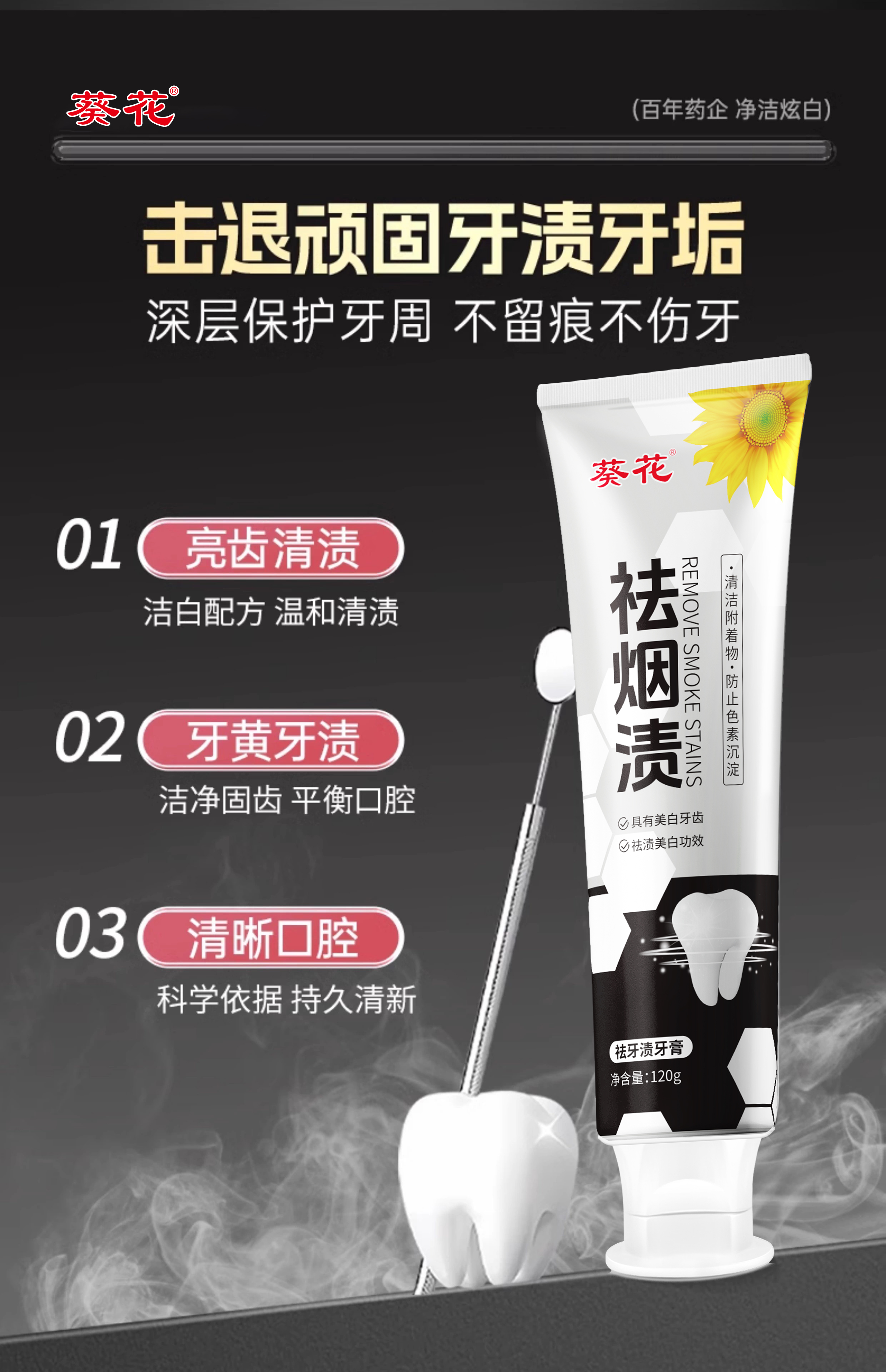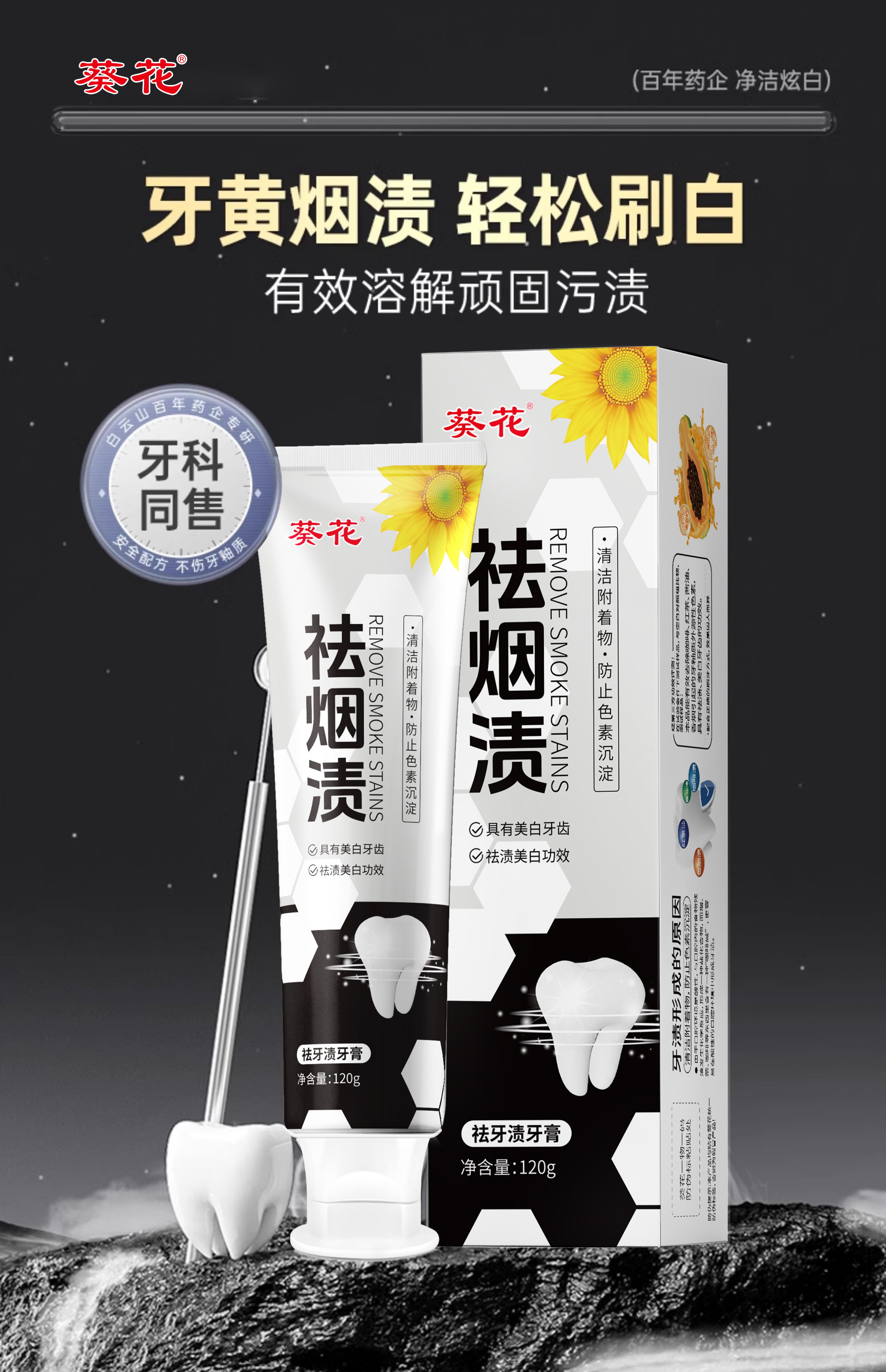 葵花【正品】祛烟渍去黄清新亮白护龈祛渍固牙洁白护理溶解牙膏