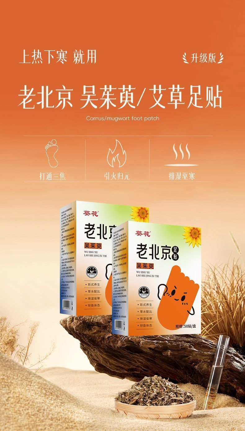 葵花吴茱萸足贴养生脚贴祛湿寒助眠失眠活络保温养颜去湿气宫寒