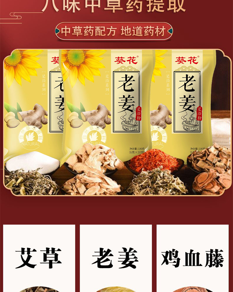 葵花自然艾草老姜草本泡脚包泡脚粉养生包艾叶艾草男女士通用