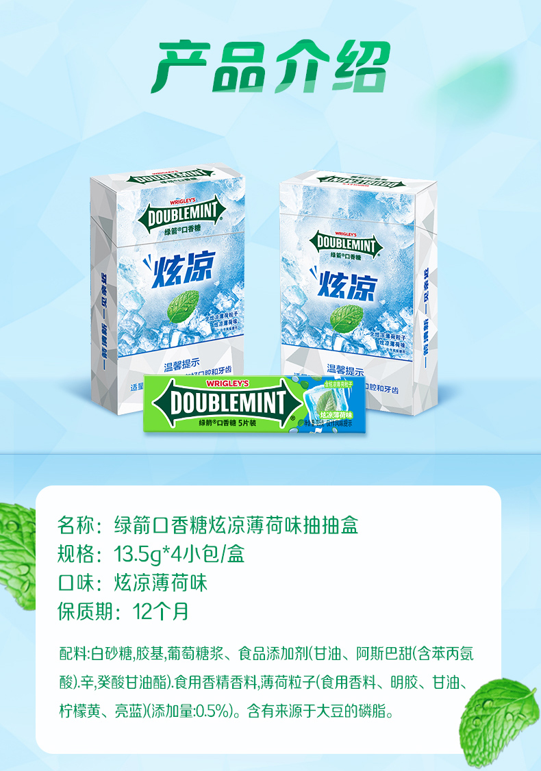 【官方正品】到手4盒绿箭多口味口香糖时尚运动休闲社交口气零食