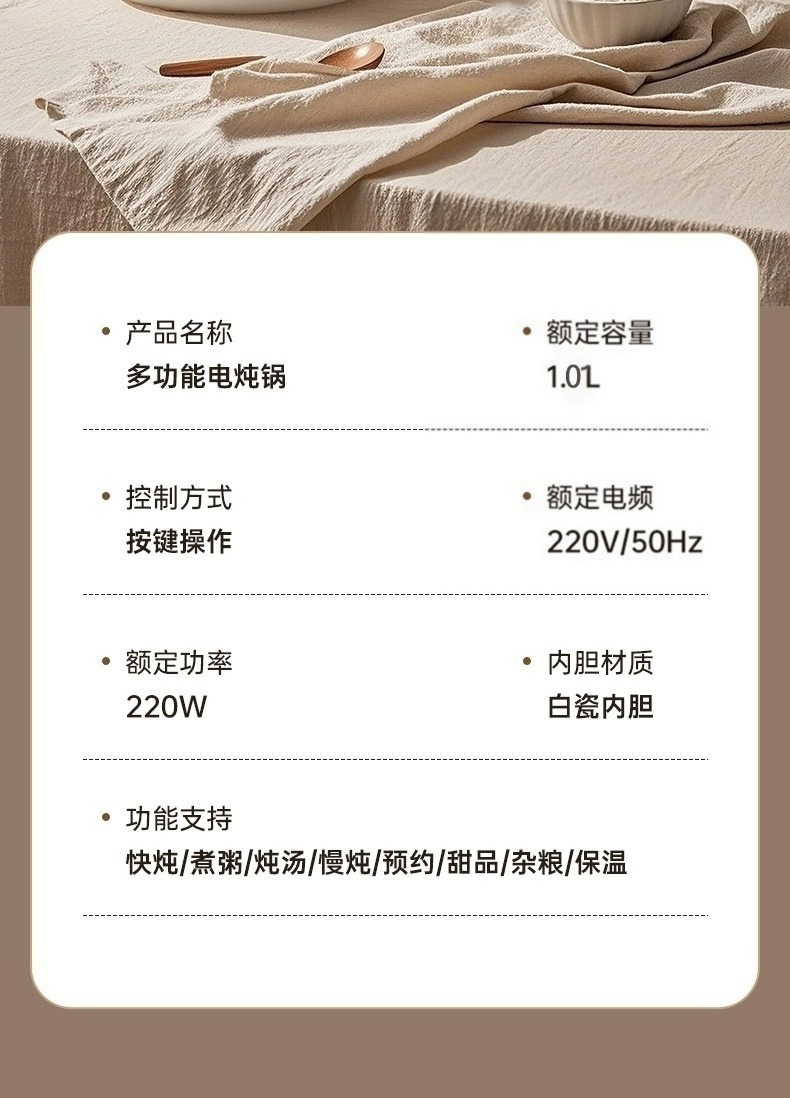 - ¥169.00 1.8L(芯厨奕新款白瓷电炖锅),皓月白