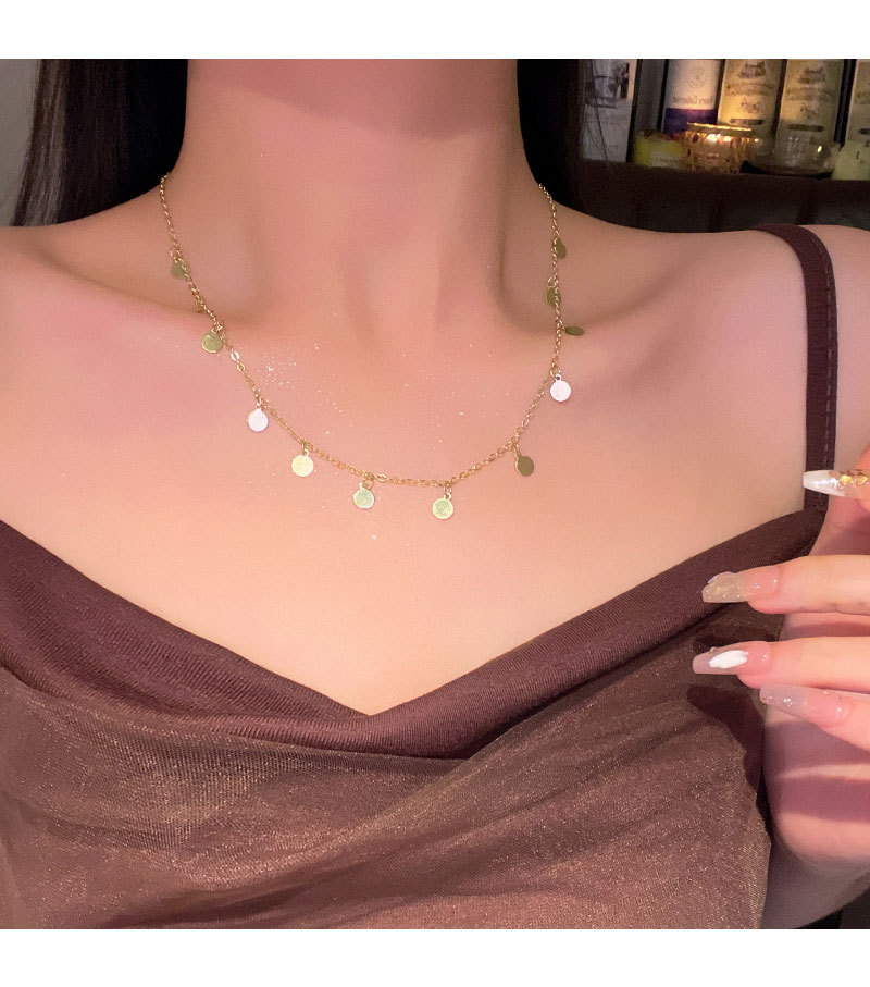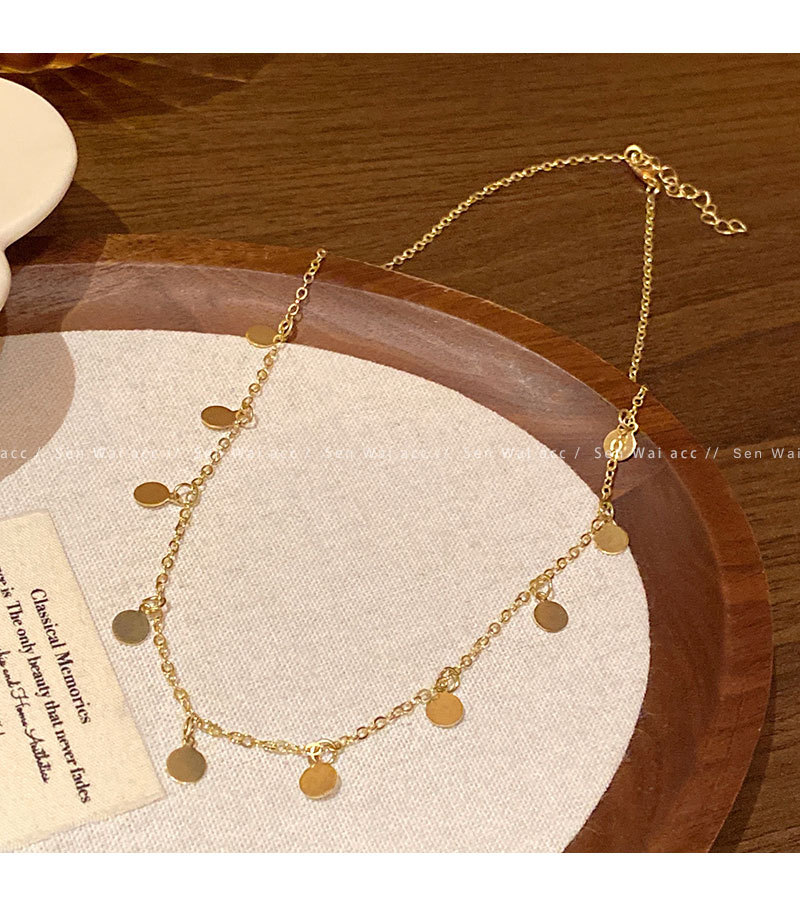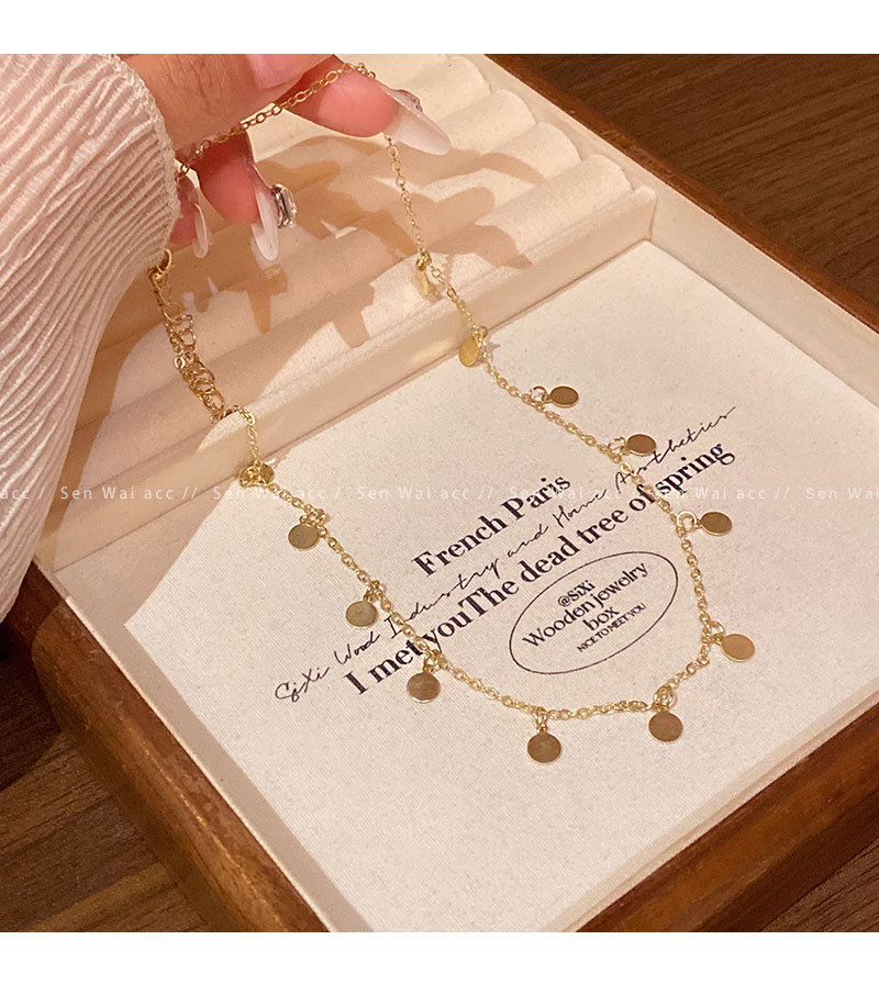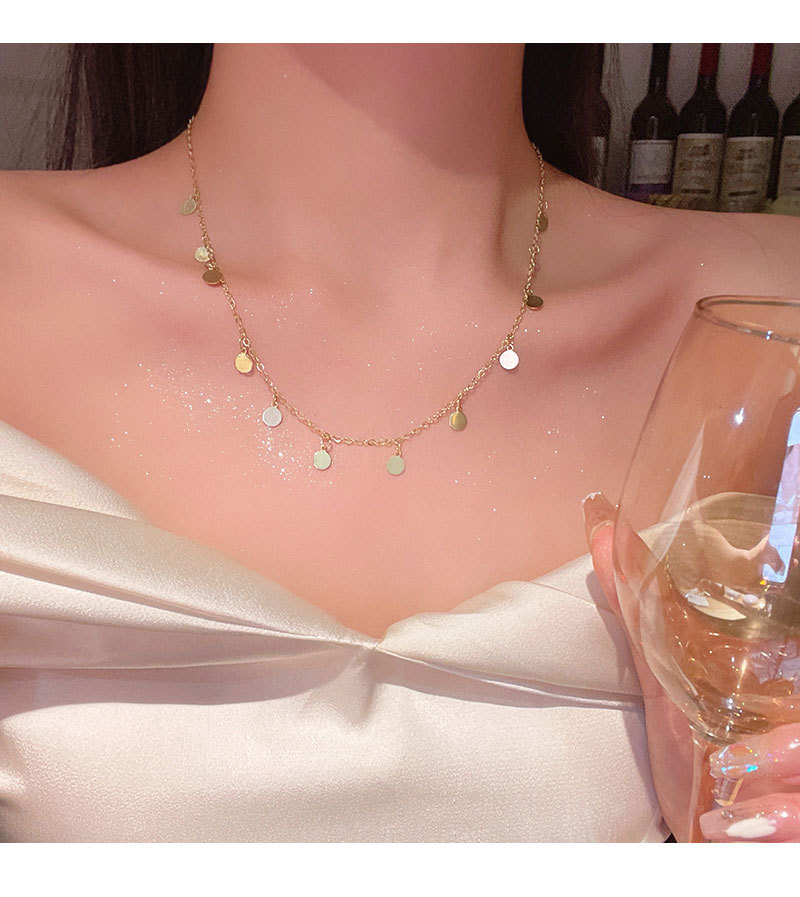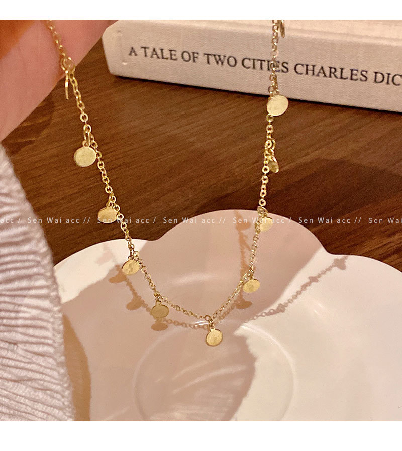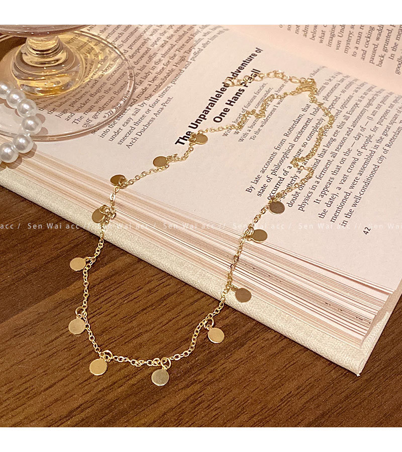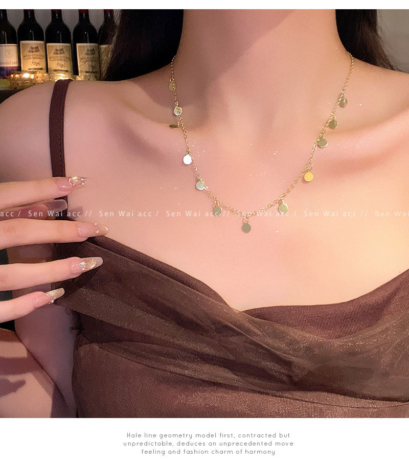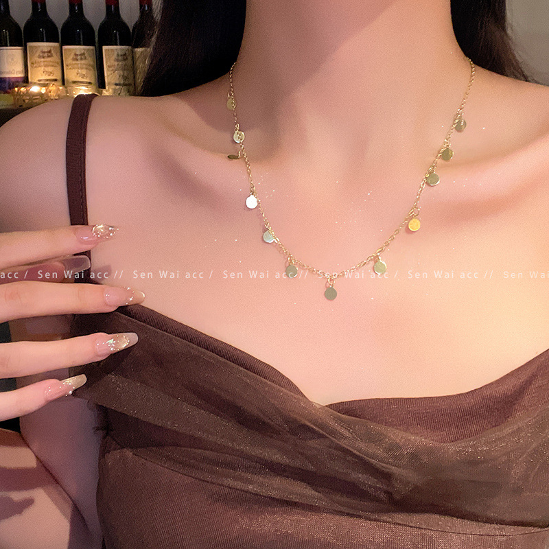 合金项链 波西米亚风串珠亮片项链女百搭小众气质叠戴锁骨链配饰