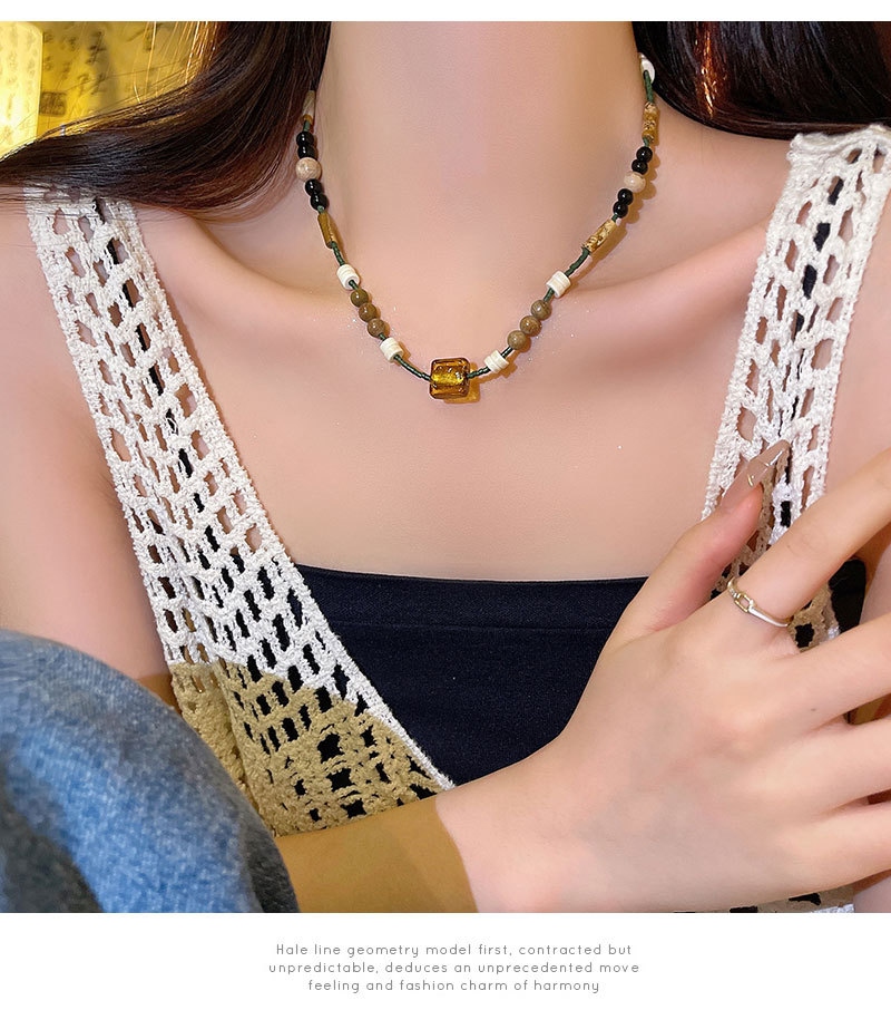 非金属树脂项链 波西米亚民族风项链女复古小众设计感夏天锁骨链