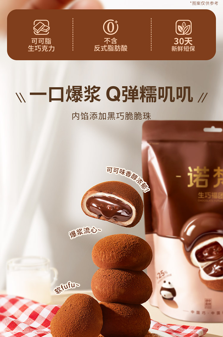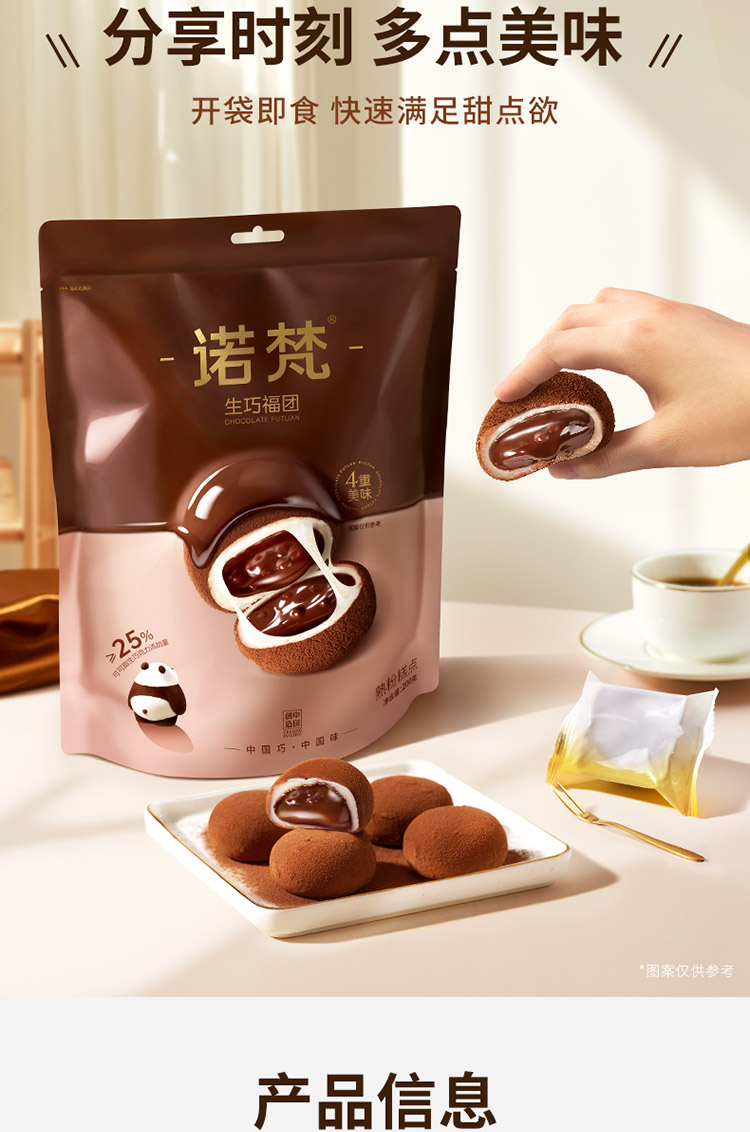 自从在网上偶然发现了这款诺梵生巧福团,它就迅速成为了我的下午茶首选!这次购买的200g*4袋装,真的是超值享受。每颗糯米糍都包裹着满满的生巧内馅,一口咬下,外层软糯Q弹,内里巧克力丝滑细腻,甜而不腻,简直是味蕾的双重盛宴!