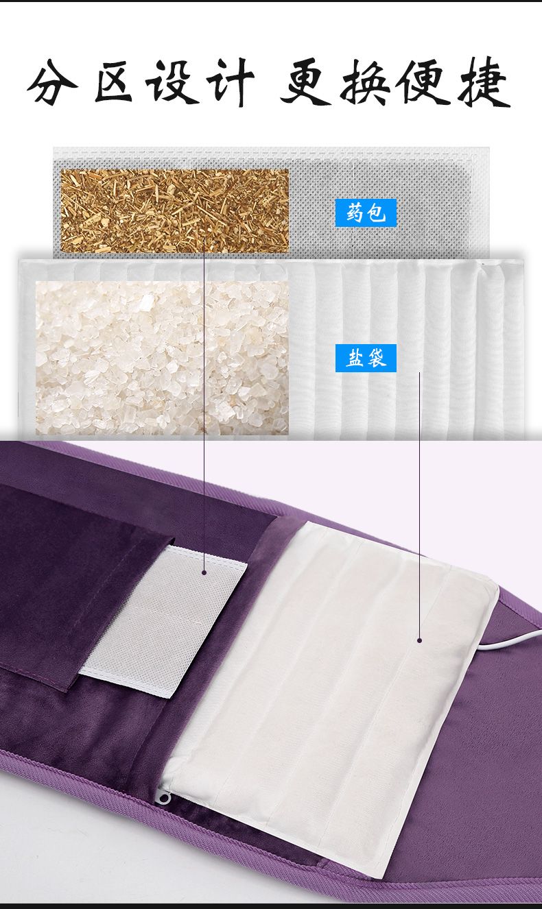 - ¥51.90高贵绒布紫加长绑带款/高低档无定时开关/药盐内胆+4艾草包