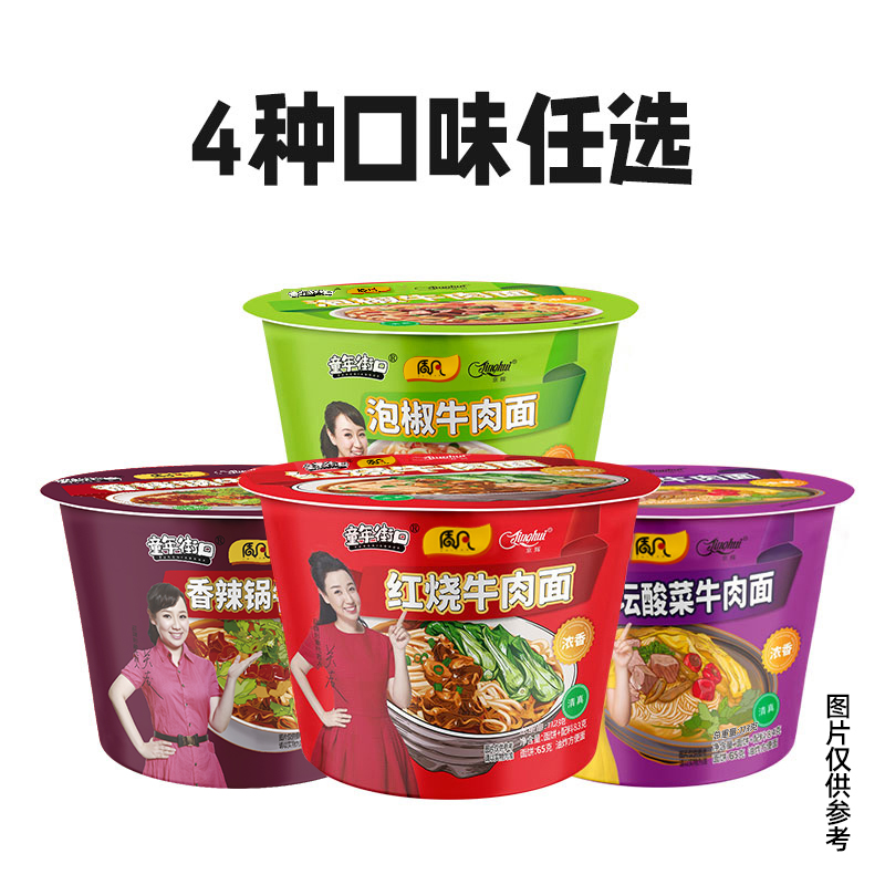 【多口味12桶】童年街口红烧香辣牛肉面老坛酸菜家庭泡面整箱批发