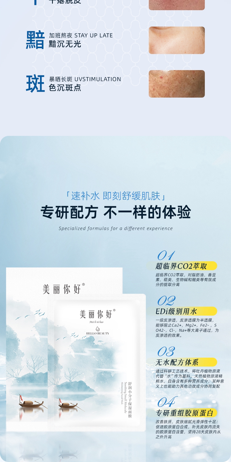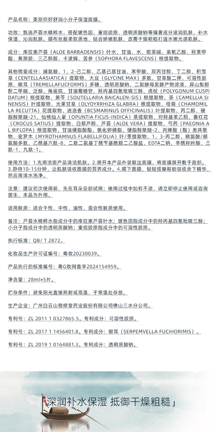全新小分子面膜补水保湿硬质水大干皮买二送一+2片同款试用装面膜