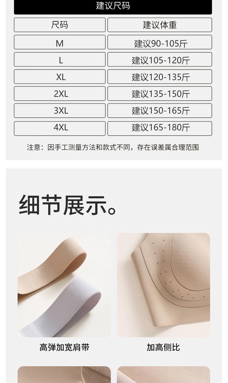 - ¥139.00粉底肤+香槟白(两件装更划算),3XL((42BC 150-165斤))