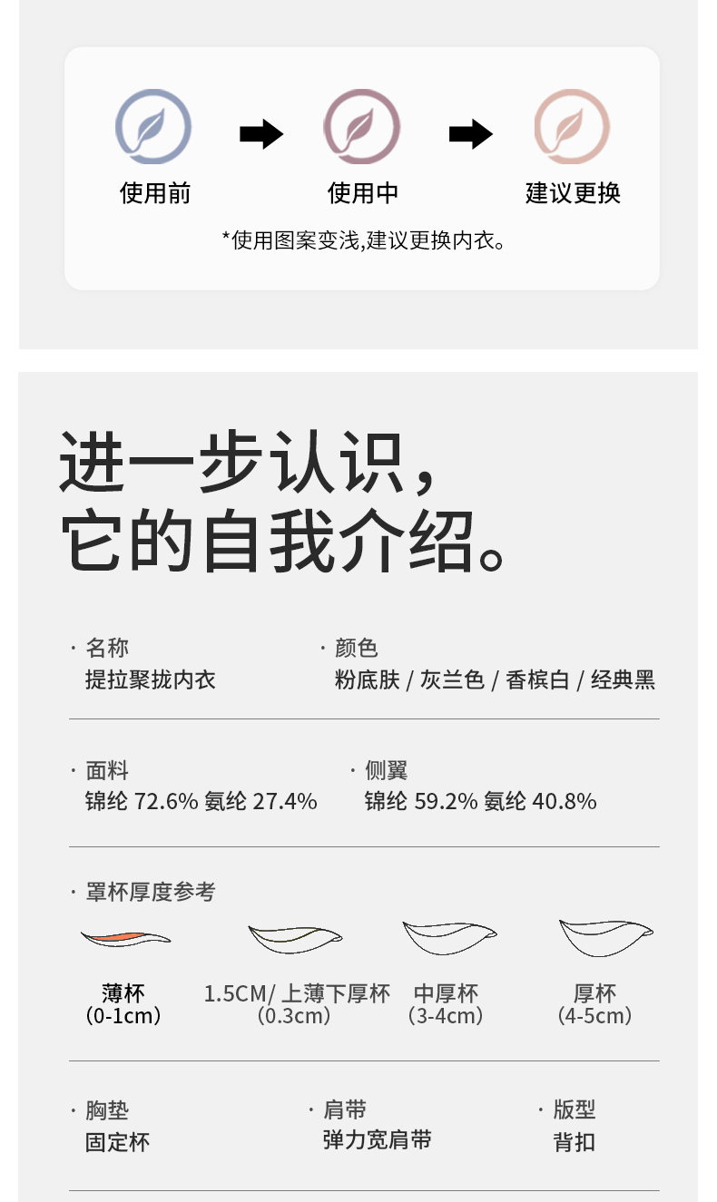 - ¥78.30香槟白(提拉聚拢 轻薄显瘦),M((34BC 90-105斤))