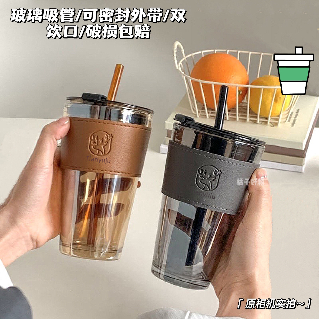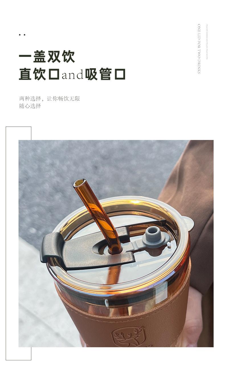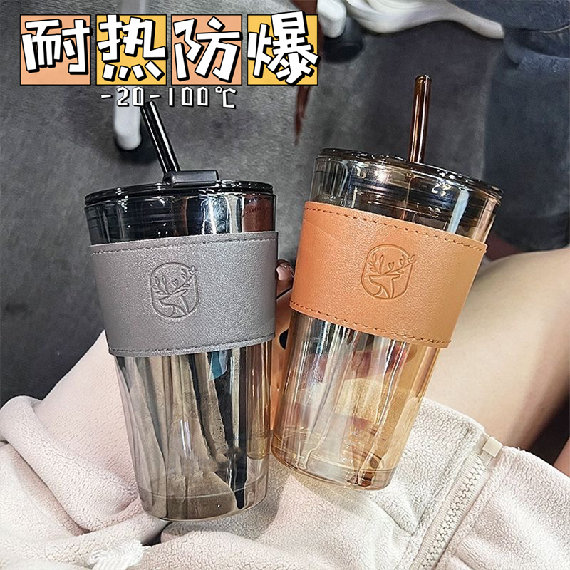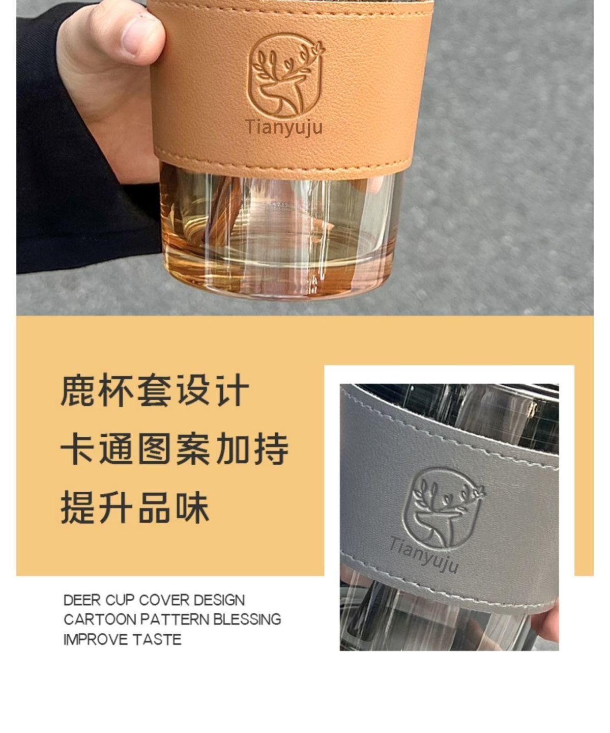 网红便携牛奶咖啡小鹿杯玻璃吸管双饮款高颜值 ins极光玻璃水杯