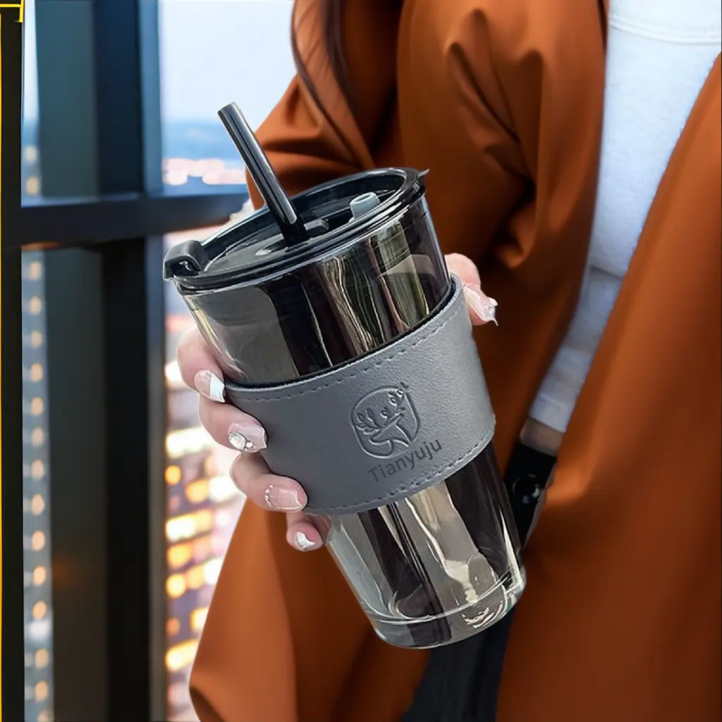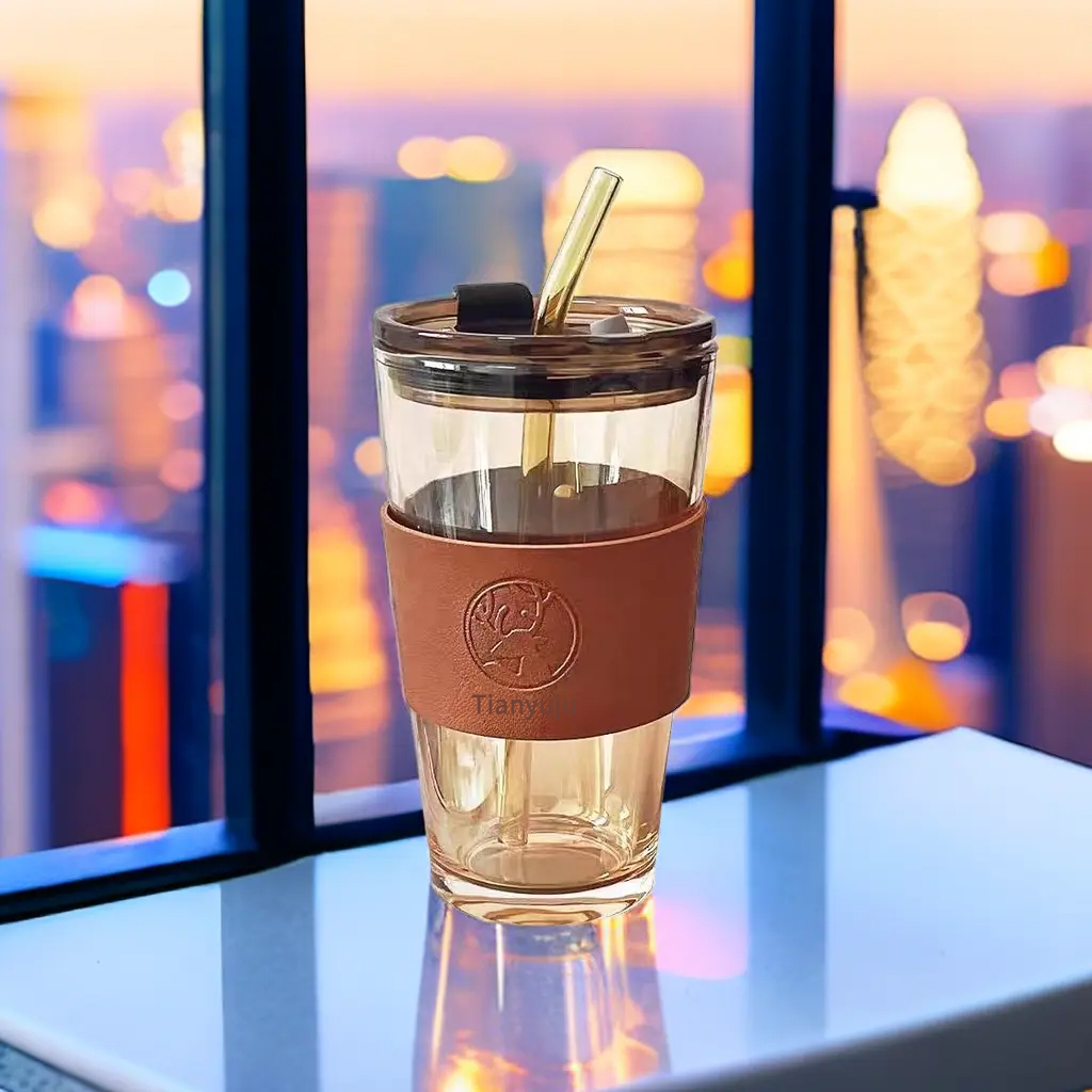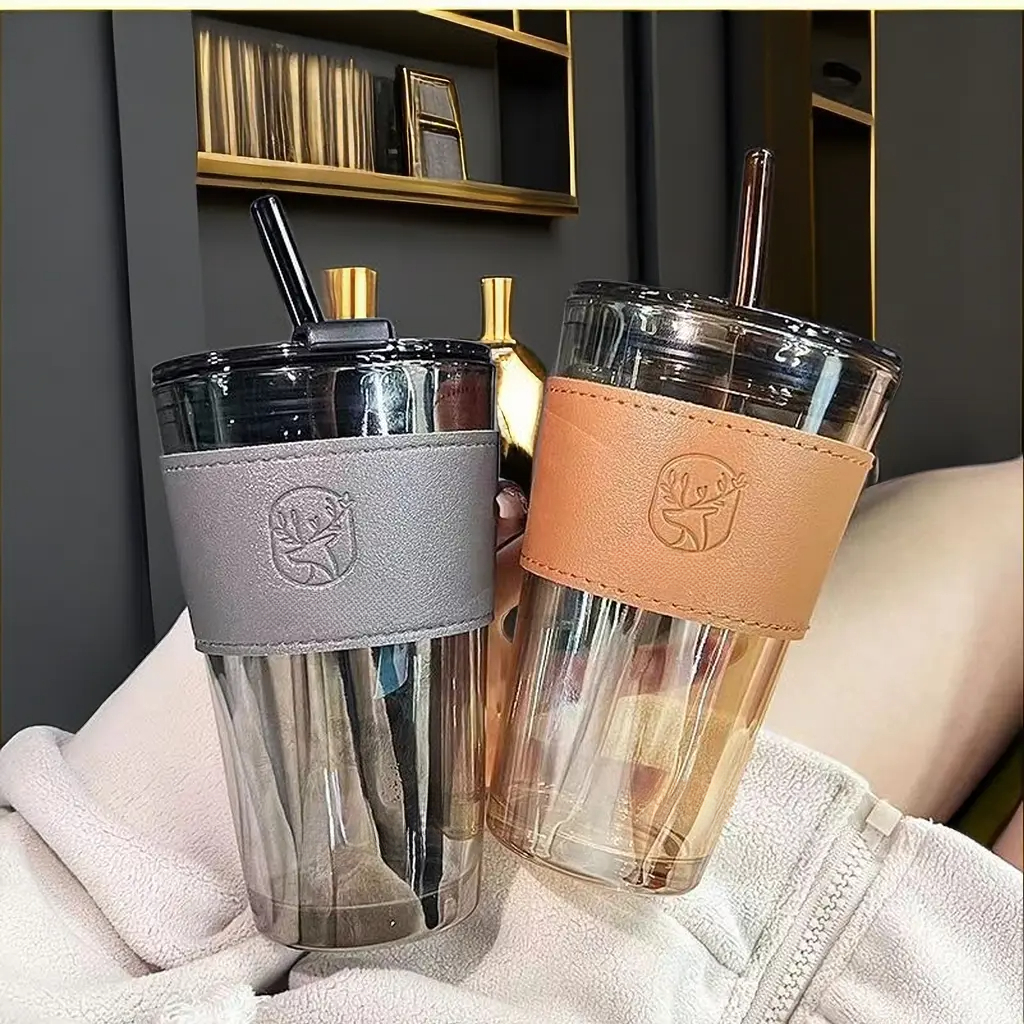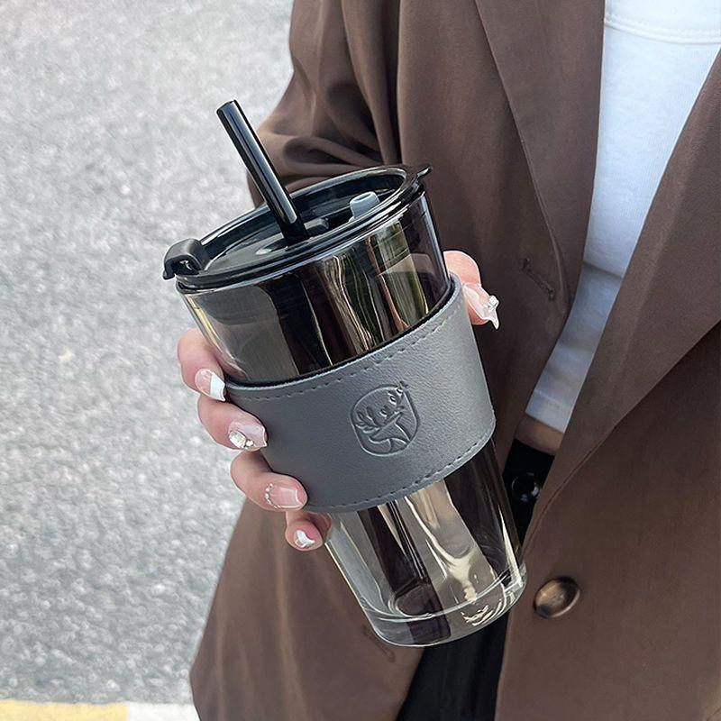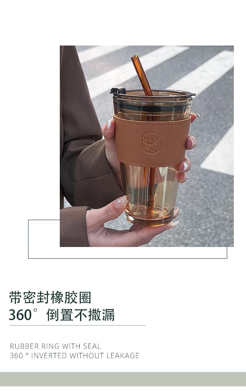 网红便携牛奶咖啡小鹿杯玻璃吸管双饮款高颜值 ins极光玻璃水杯