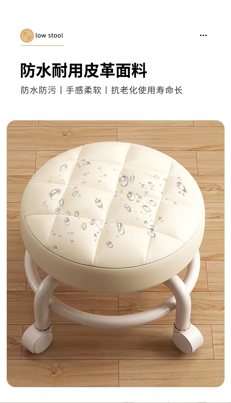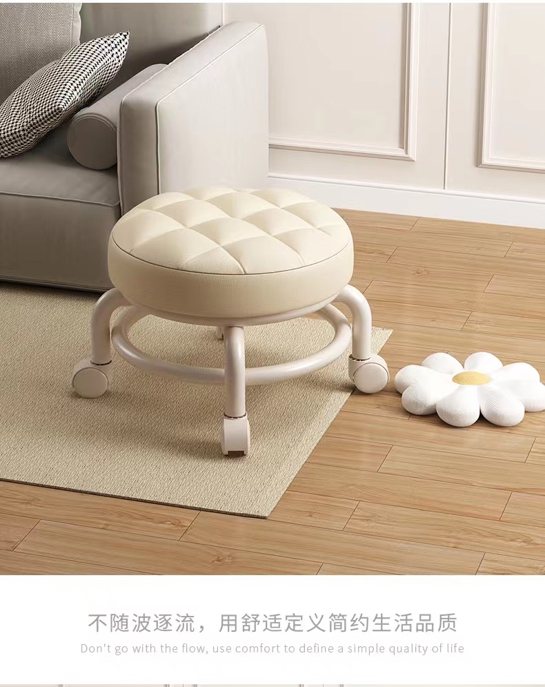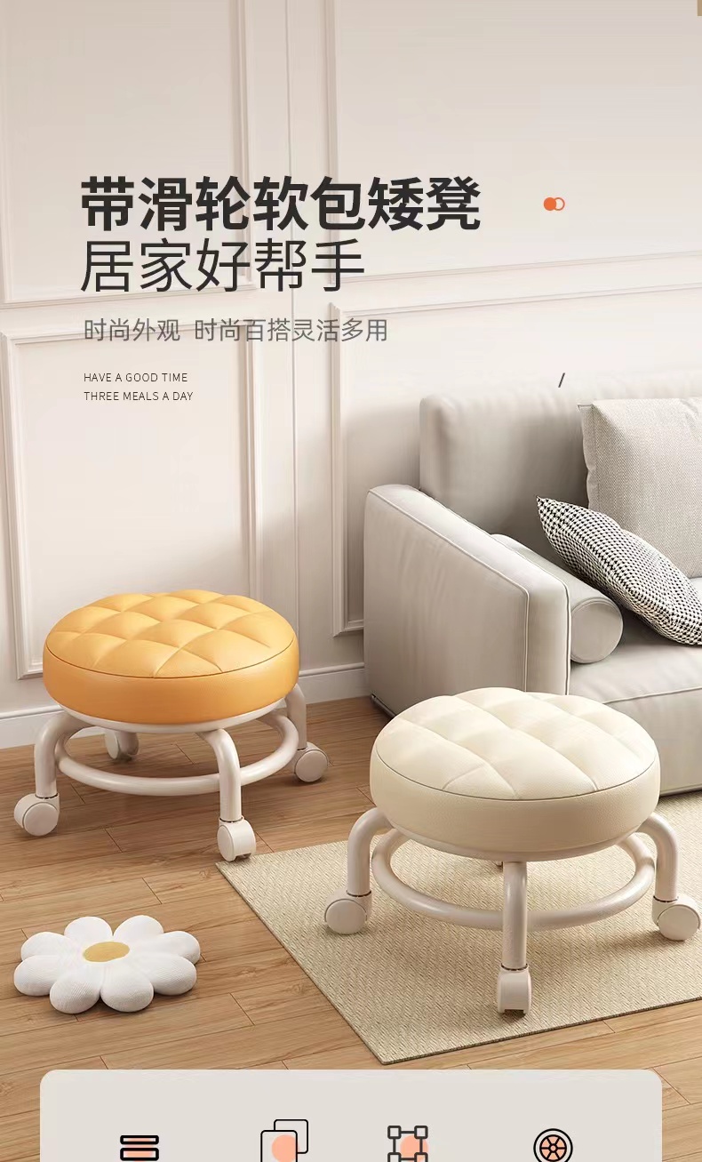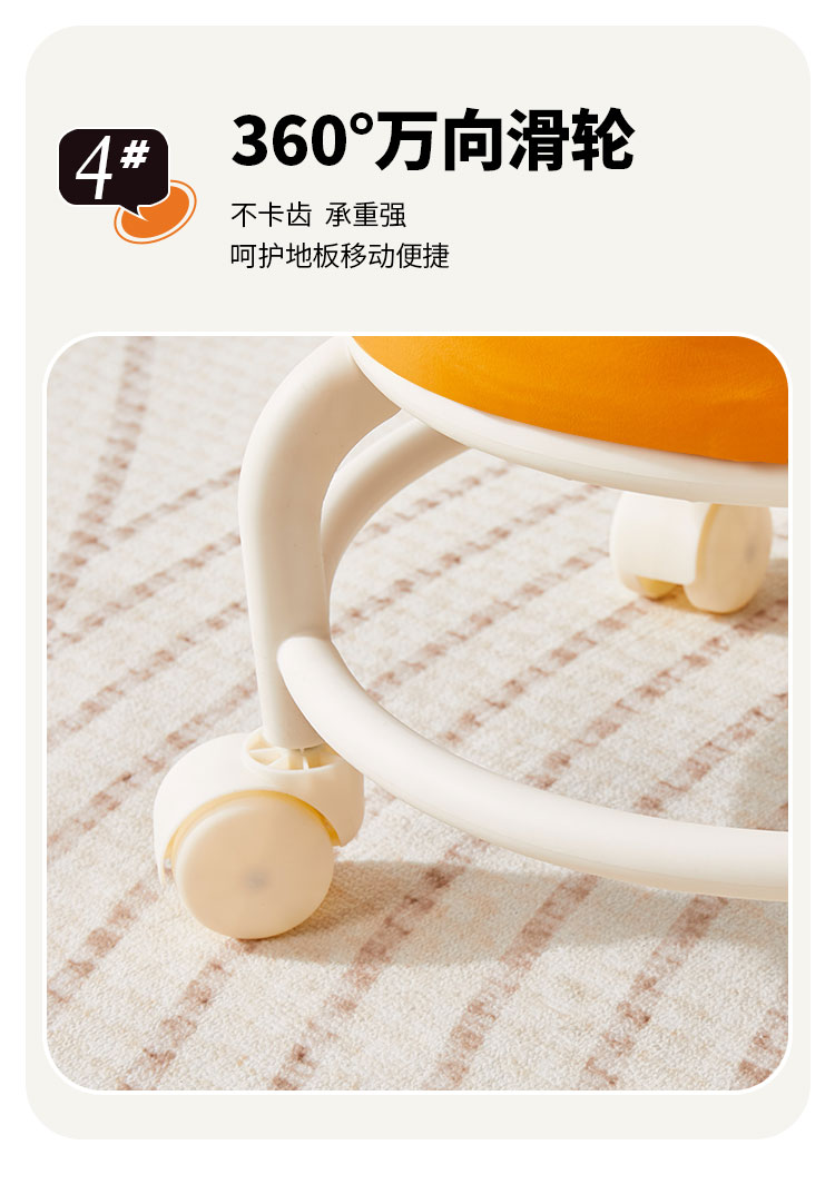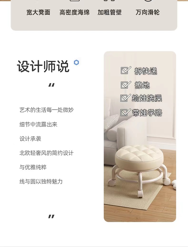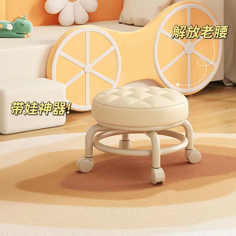 【颜色随机】万向滑轮凳换鞋矮凳带娃神器化妆凳奶油风儿童小凳子