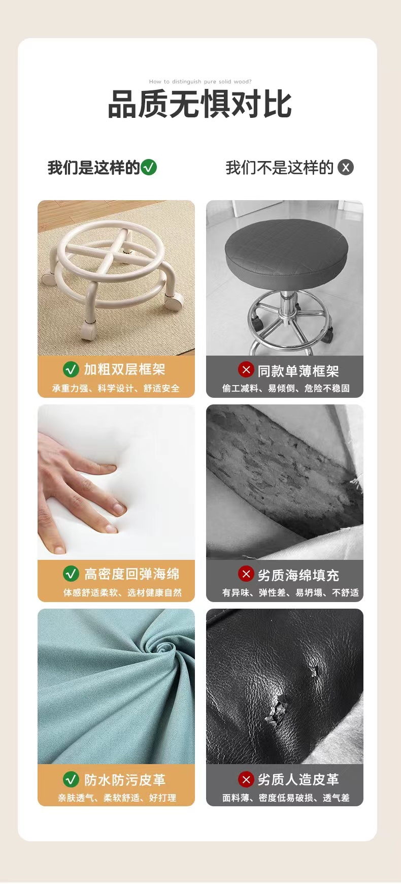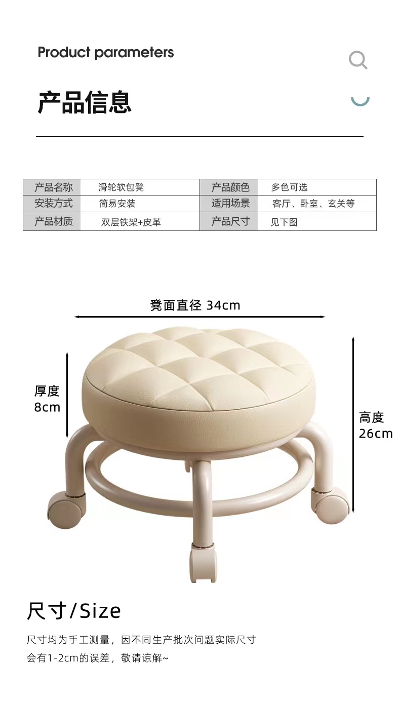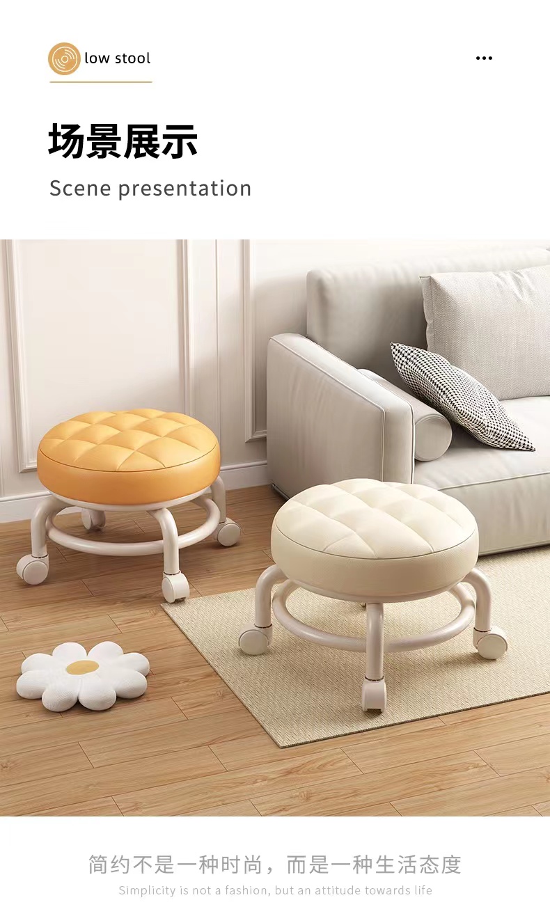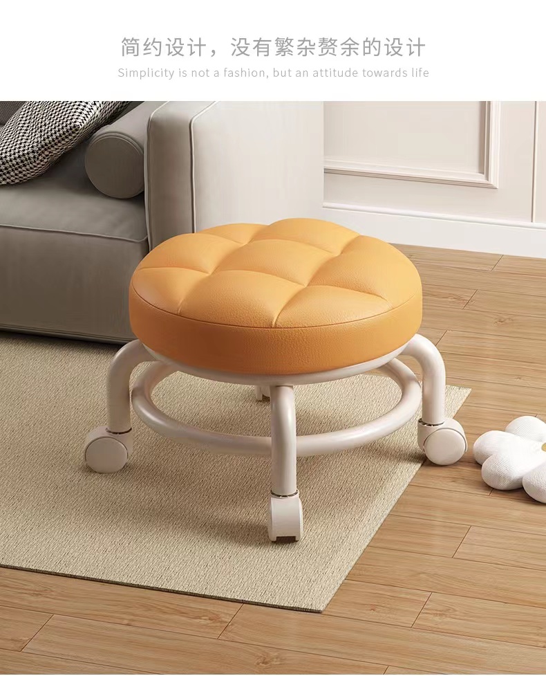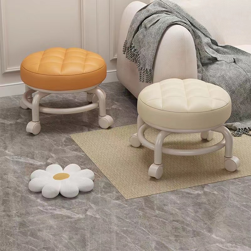【颜色随机】万向滑轮凳换鞋矮凳带娃神器化妆凳奶油风儿童小凳子