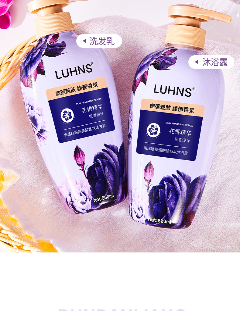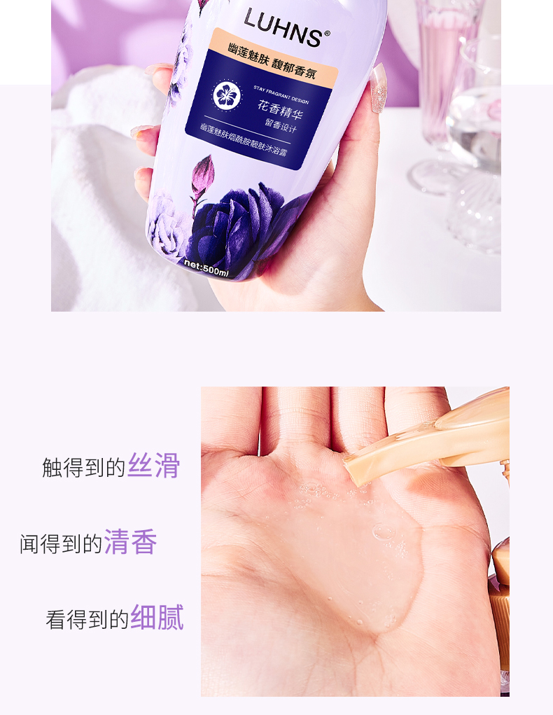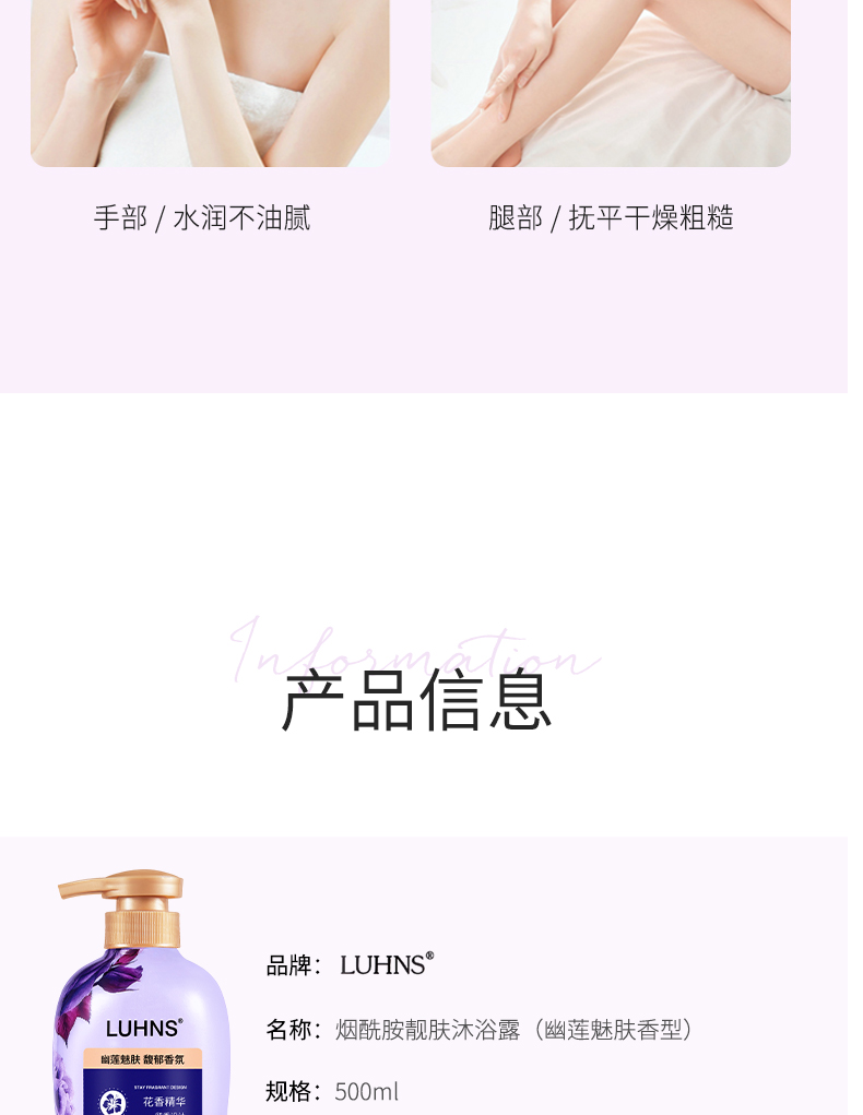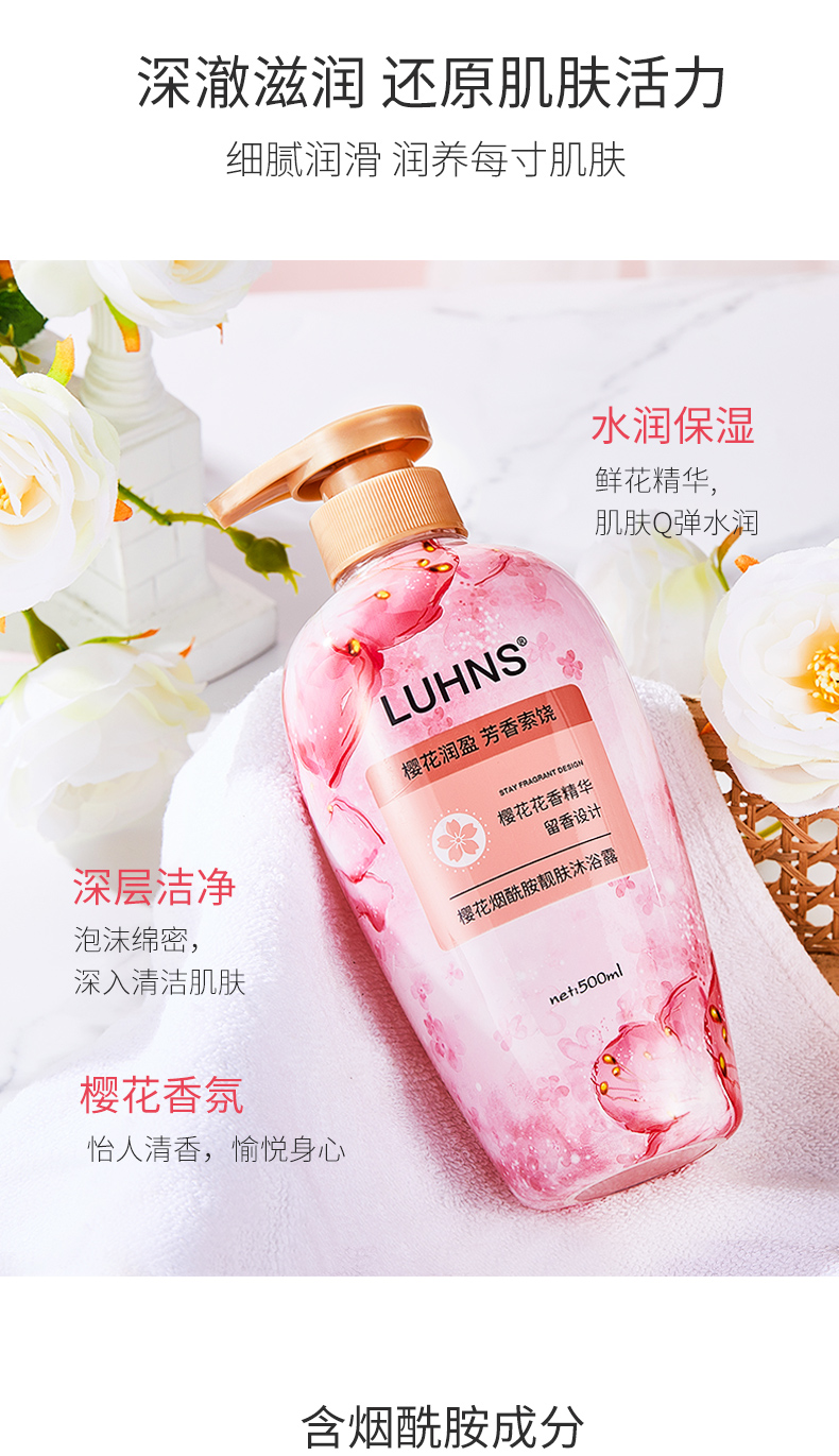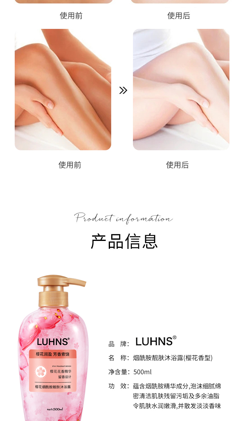 【 粉丝专享】LUHNS花香魅惑烟酰持久留香胺嫩肤沐浴露500ml/瓶
