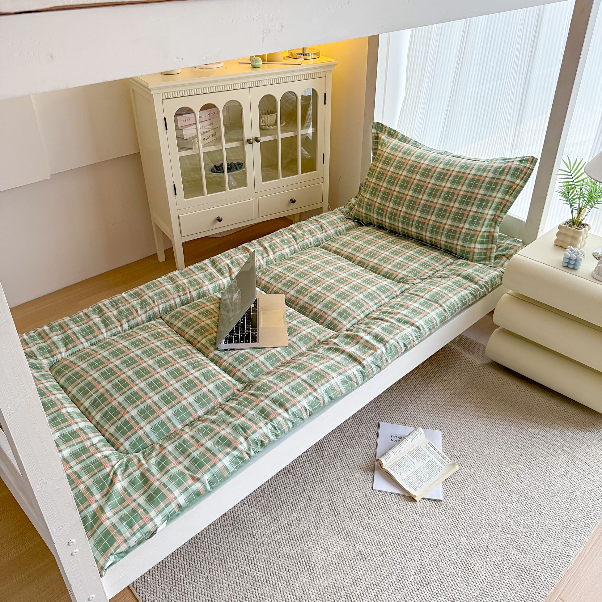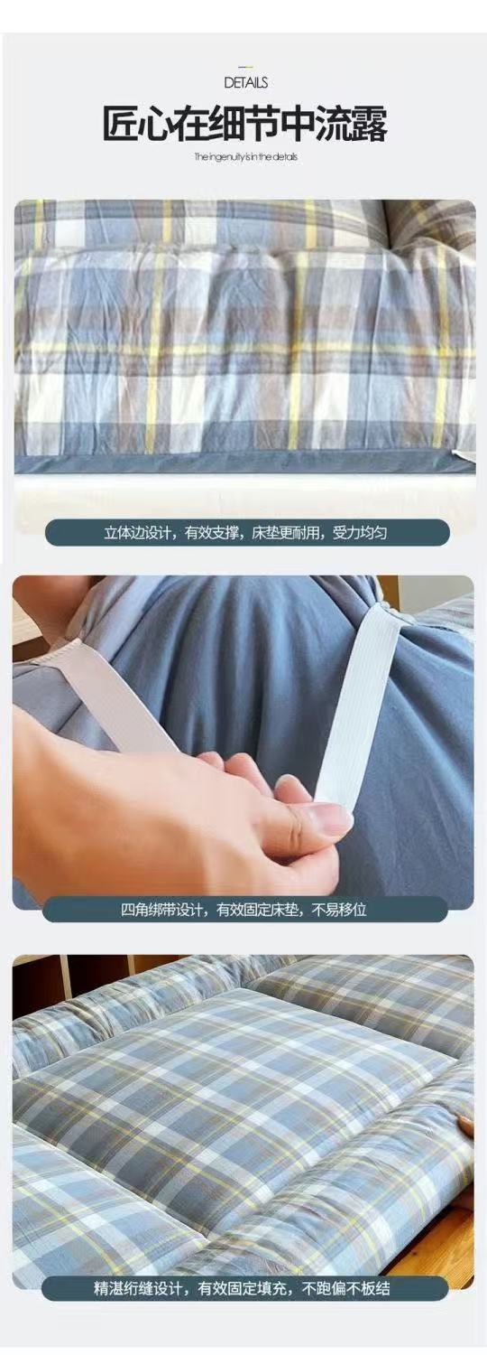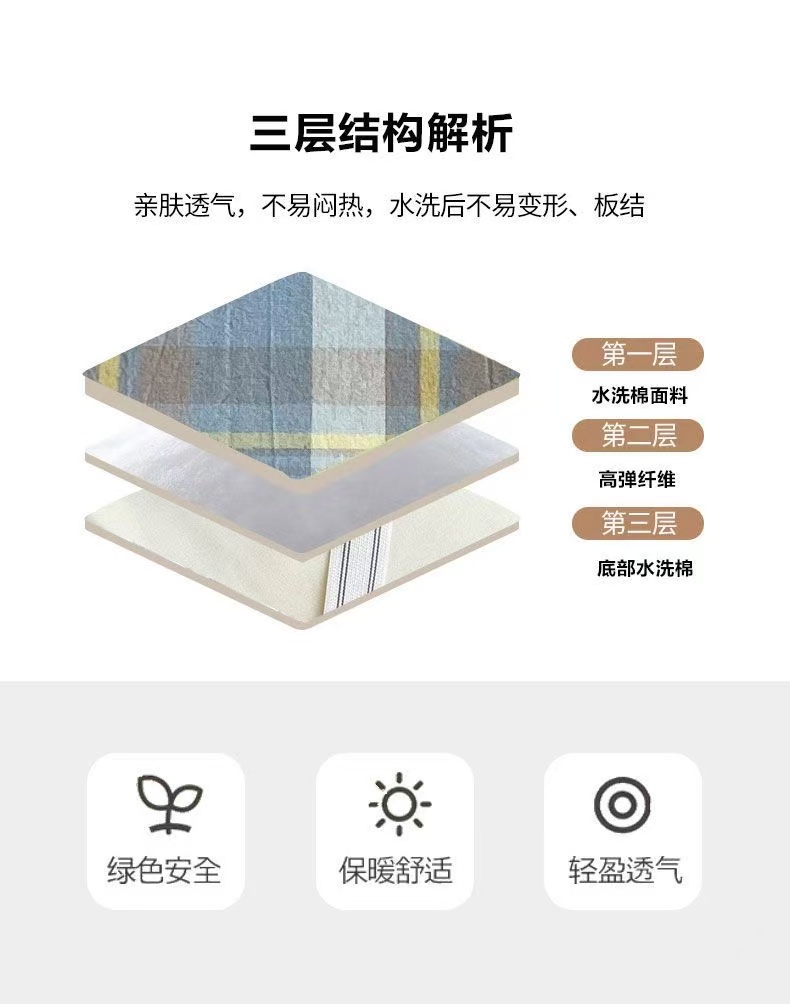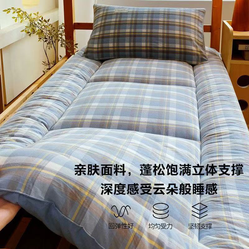 作为学生党,在宿舍使用再合适不过了,90*200CM的尺寸刚刚好,既不占地方又足够舒适。我入手的是小绿格款式,颜色清新自然,给单调的宿舍增添了几分生气。 最让我惊喜的是它的可机洗设计,这对于我们这些经常需要打理生活空间的人来说简直太方便了!以前用的床垫总是因为不好清洗而显得陈旧,这款床垫轻松解决了我的烦恼,保持床品的干净卫生从未如此简单。