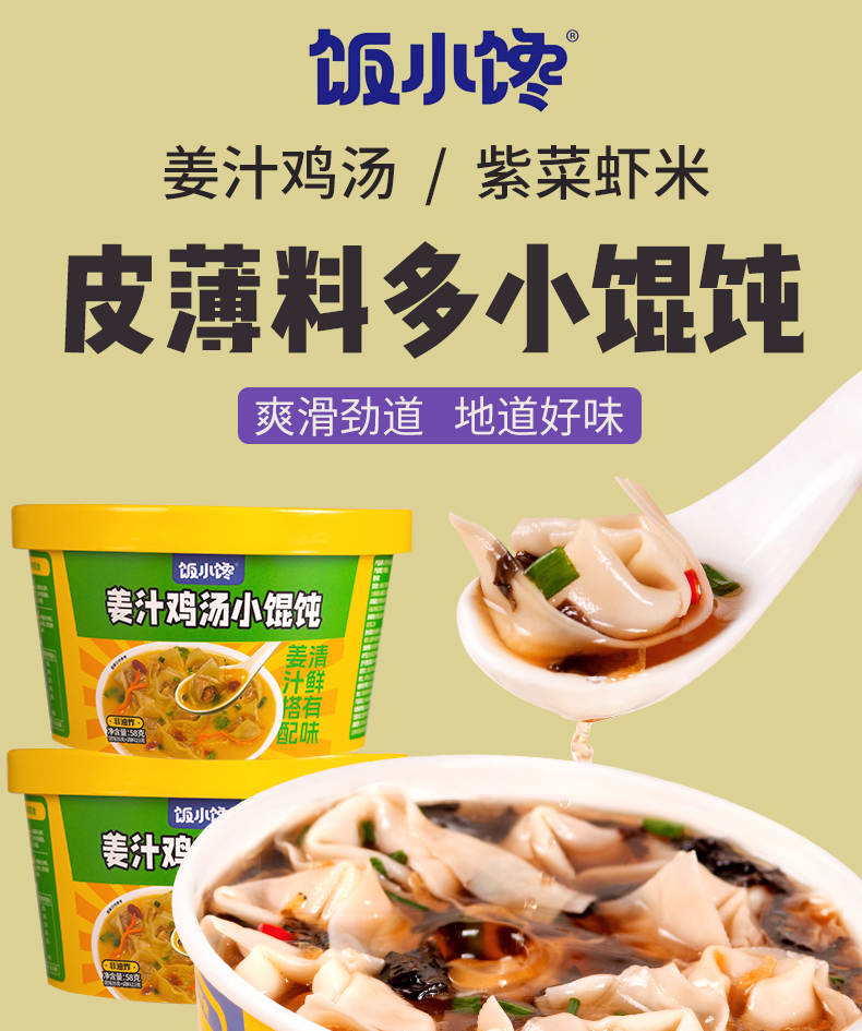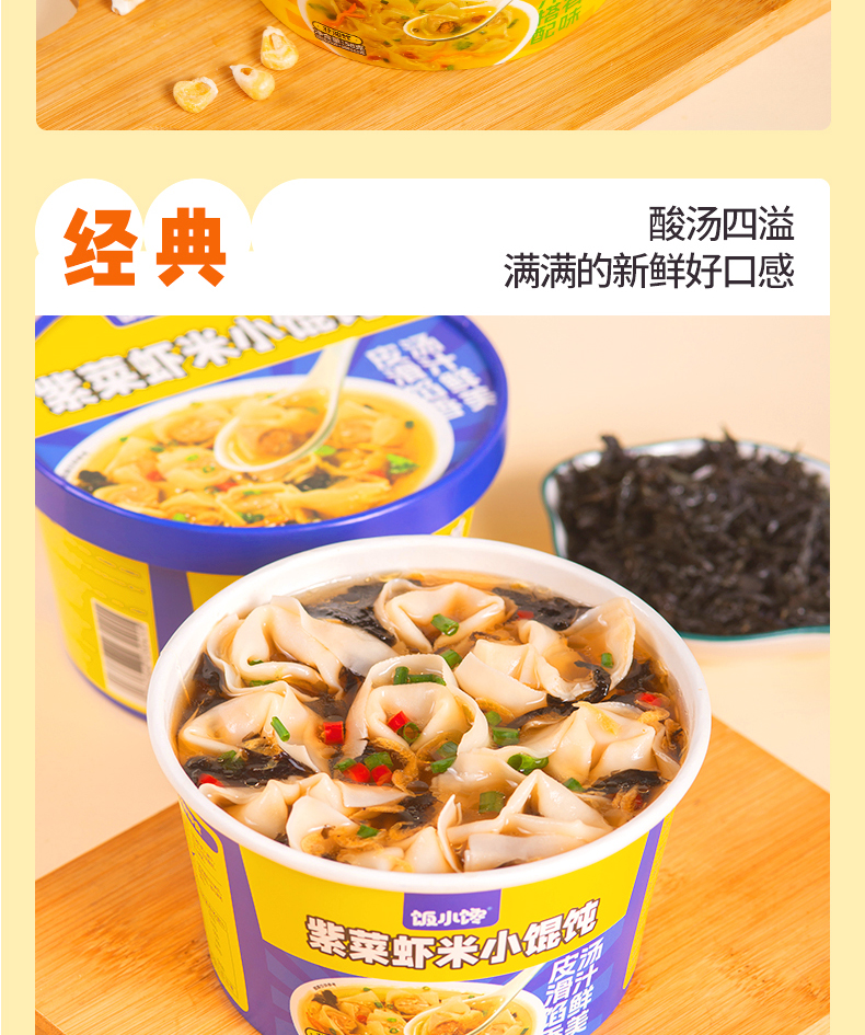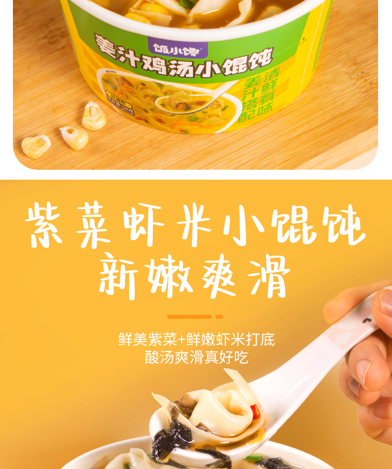 - ¥19.90紫菜虾米小馄饨58g*3桶+姜汁鸡汤小馄饨58g*3桶