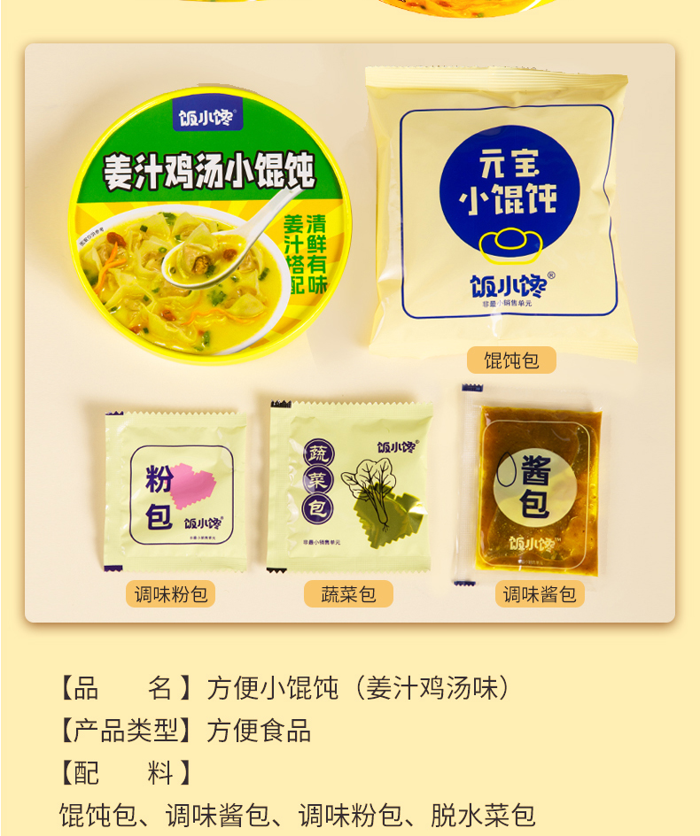 - ¥19.90姜汁鸡汤小馄饨58g*6桶