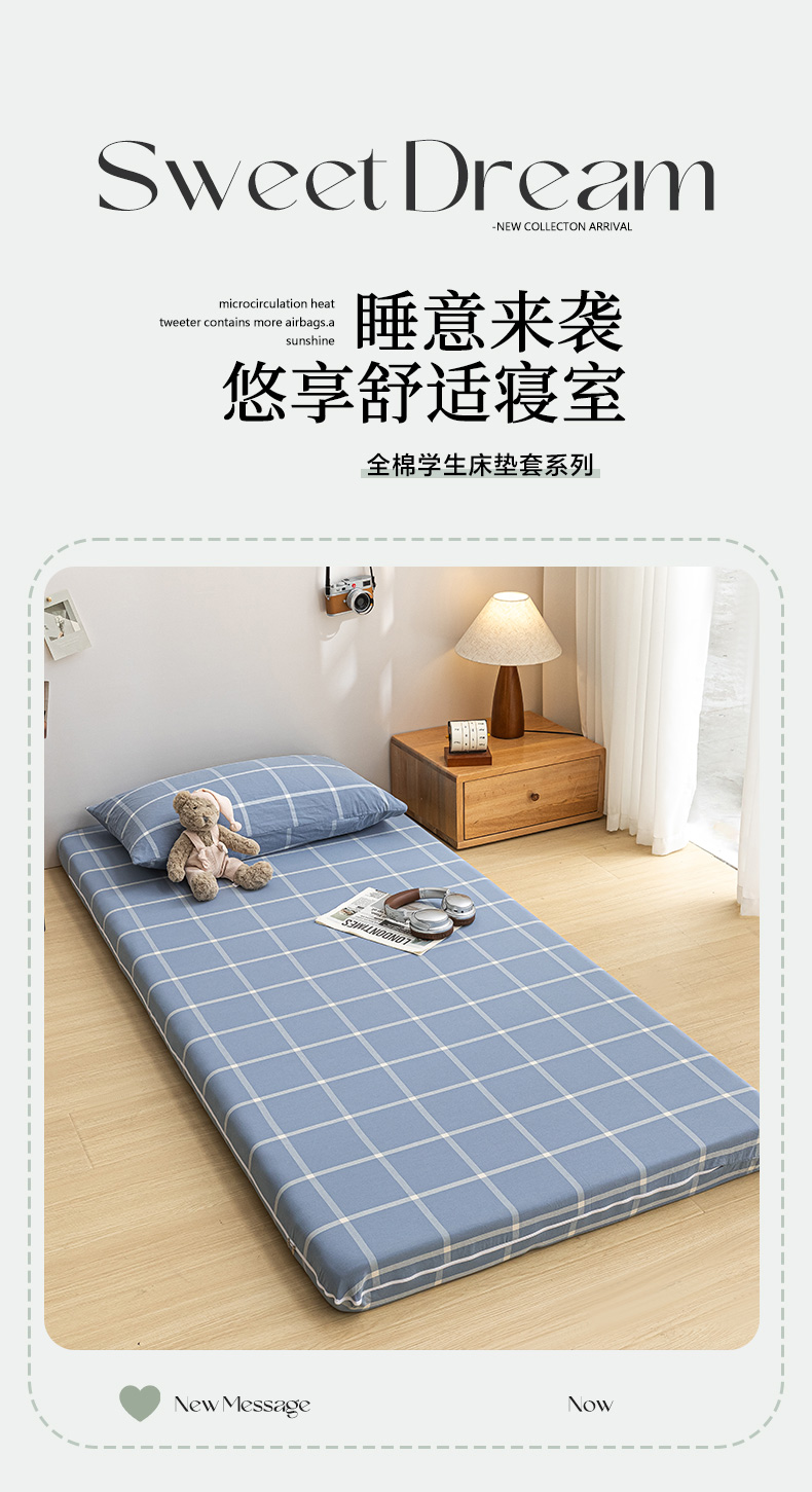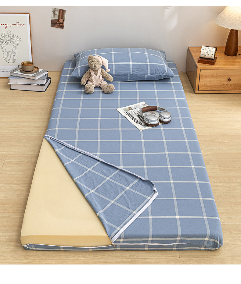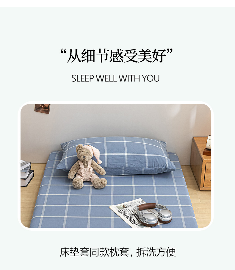 - ¥78.00蓝小格【360度全面包裹100%全棉面料】,90*190cm【适合1-8cm高度】【100%全棉面料】