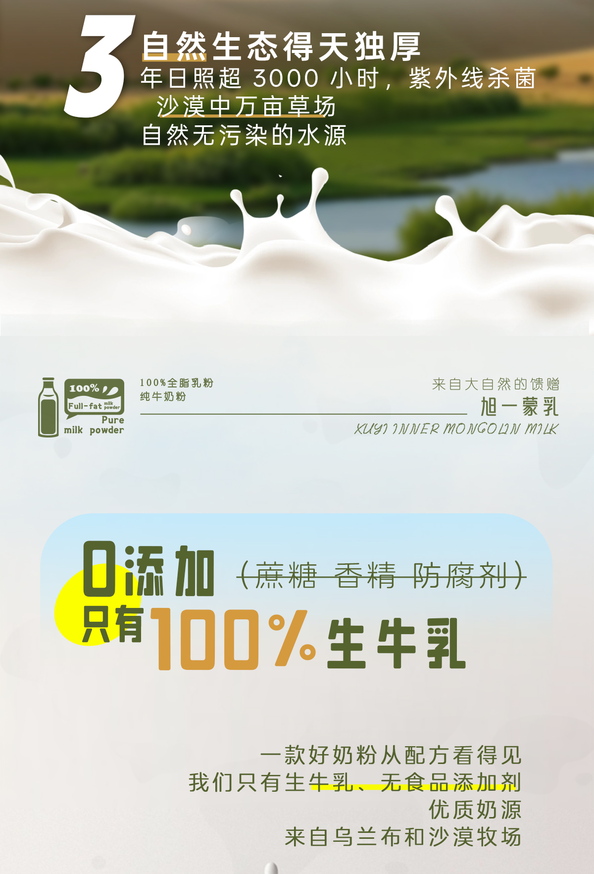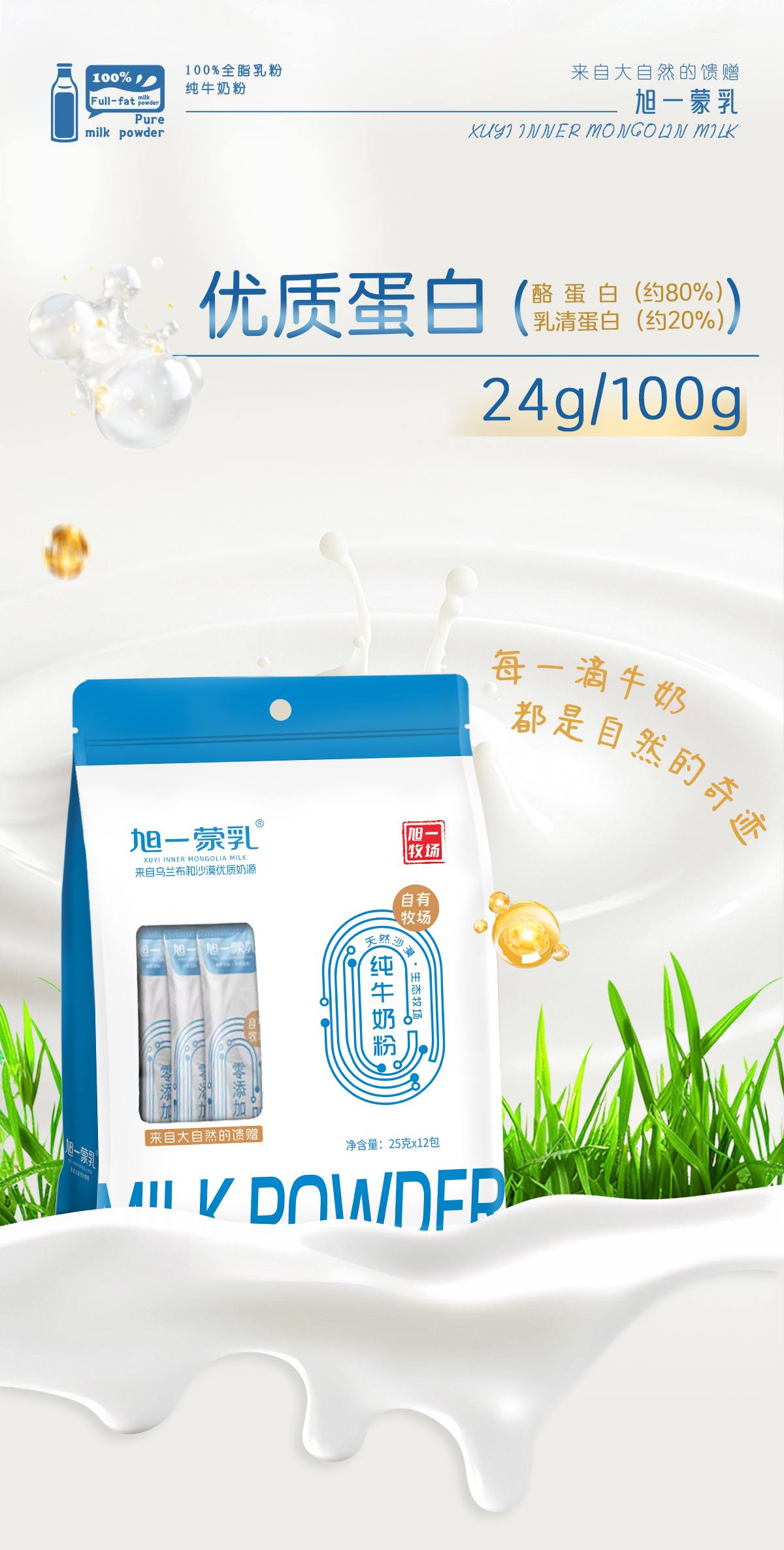 旭一蒙乳内蒙古草原纯牛奶粉 配料仅生牛乳 高钙高蛋白营养早餐