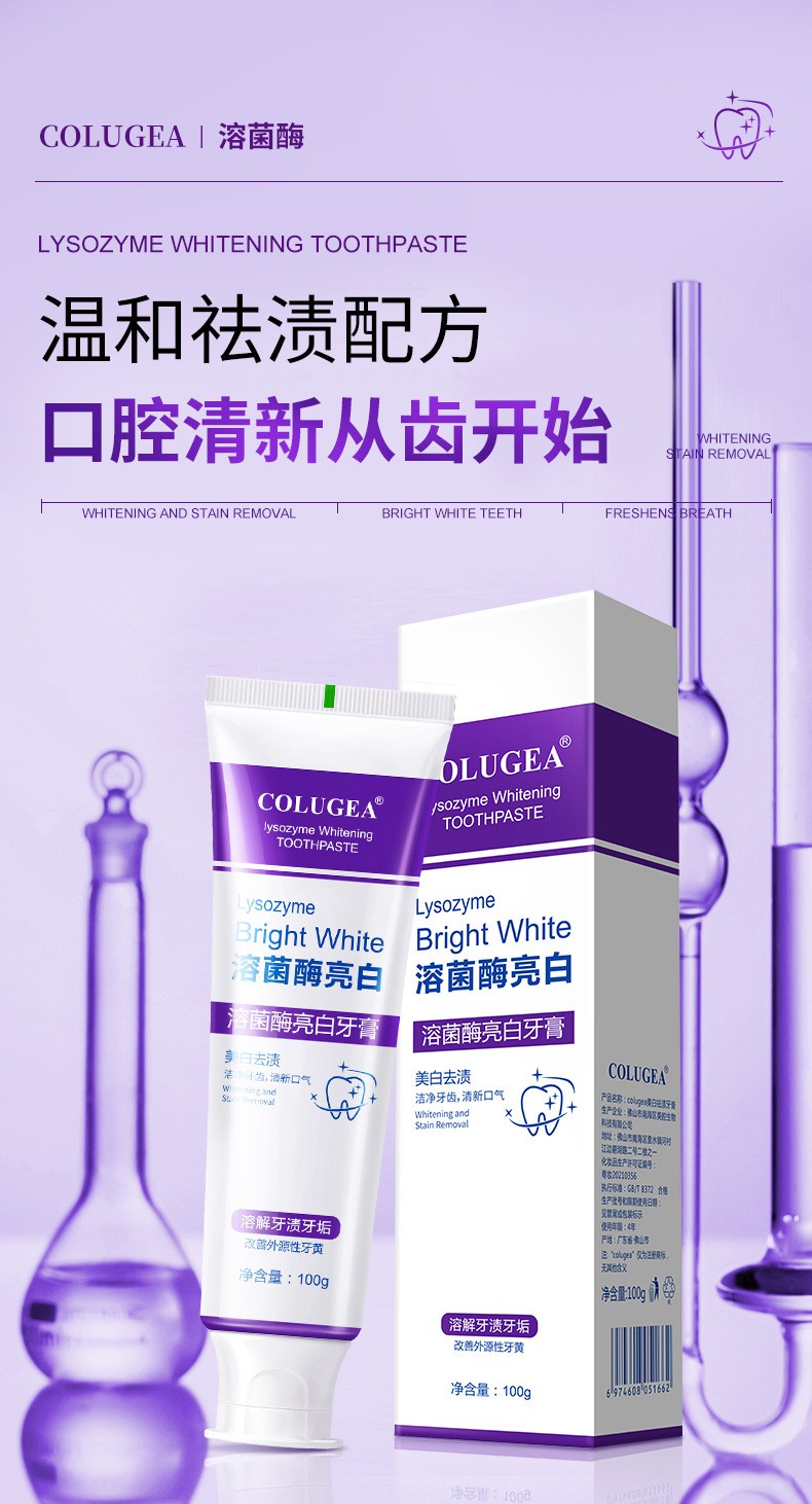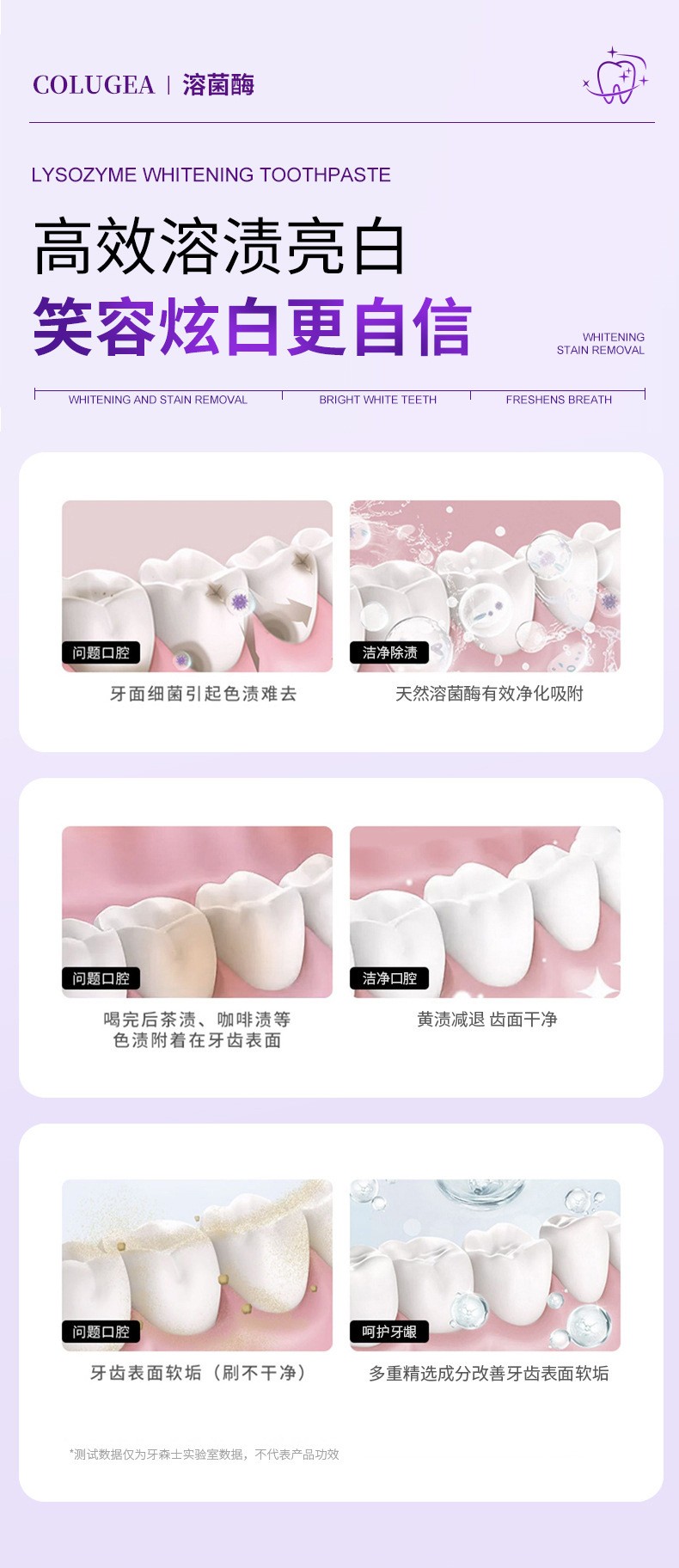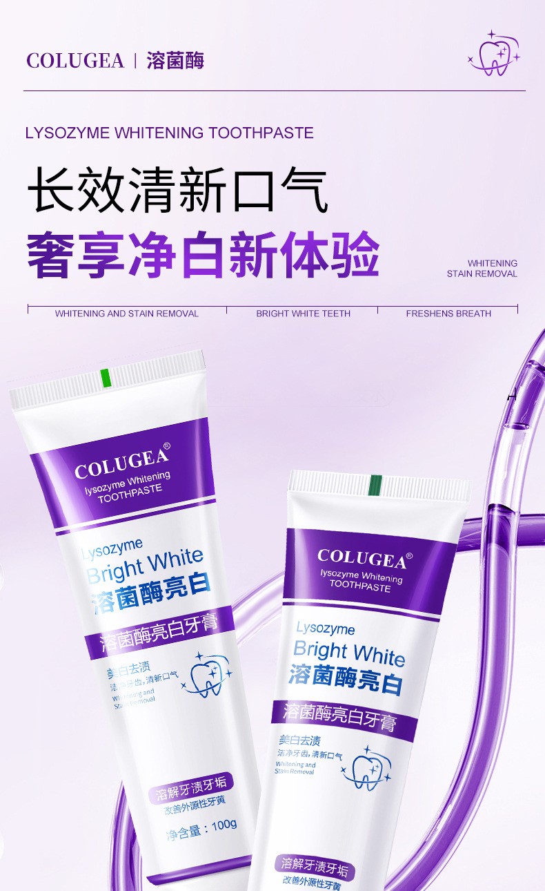 【拍1发2】溶菌酶亮白牙膏去黄牙渍清洁口腔去口臭持久留香美白牙膏