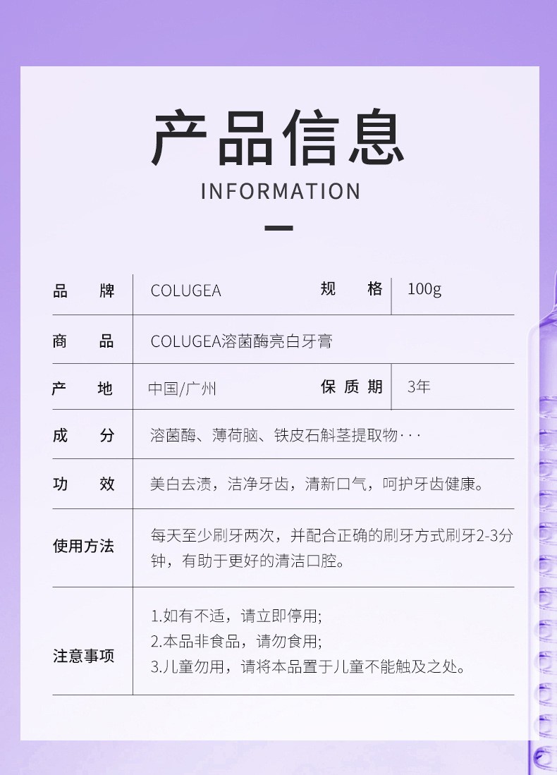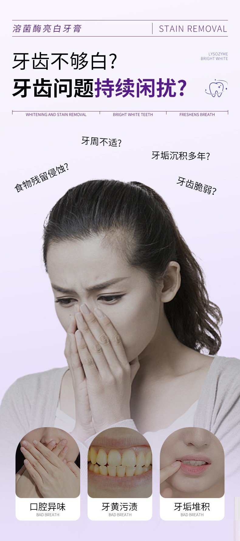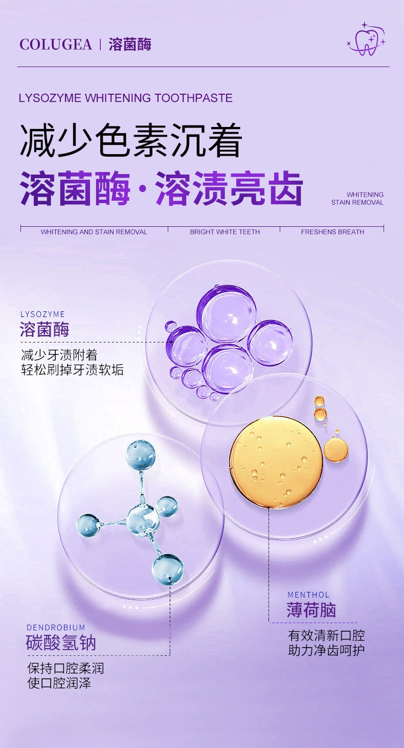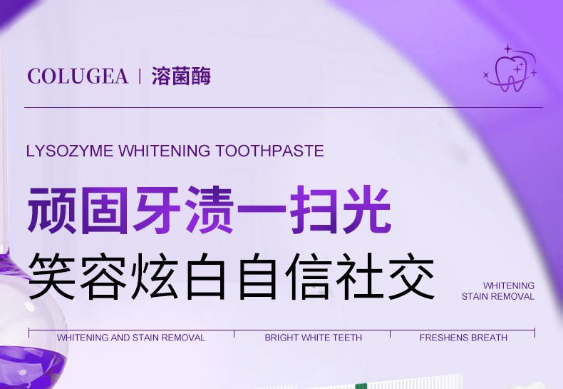 【拍1发2】溶菌酶亮白牙膏去黄牙渍清洁口腔去口臭持久留香美白牙膏