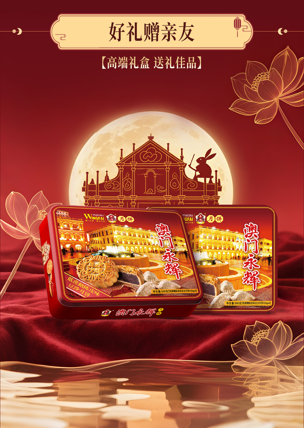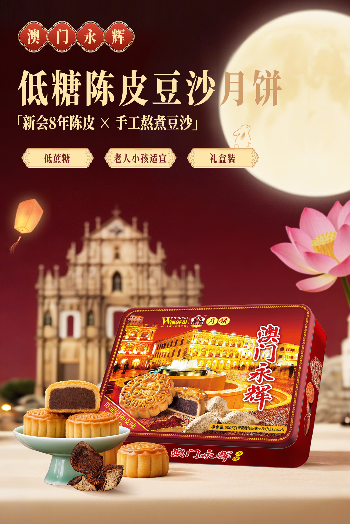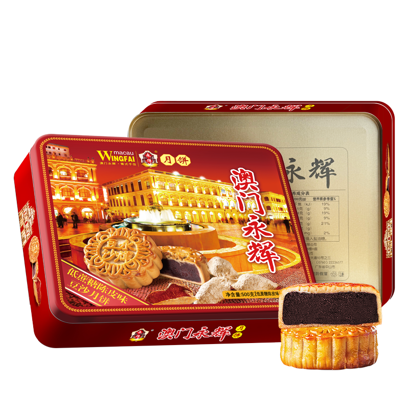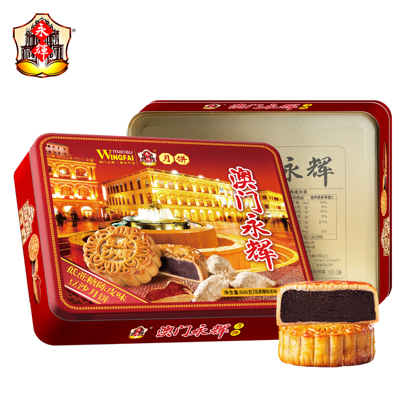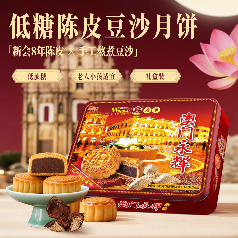 澳门永辉广式低蔗糖陈皮味豆沙月饼500g糕点零食中秋礼