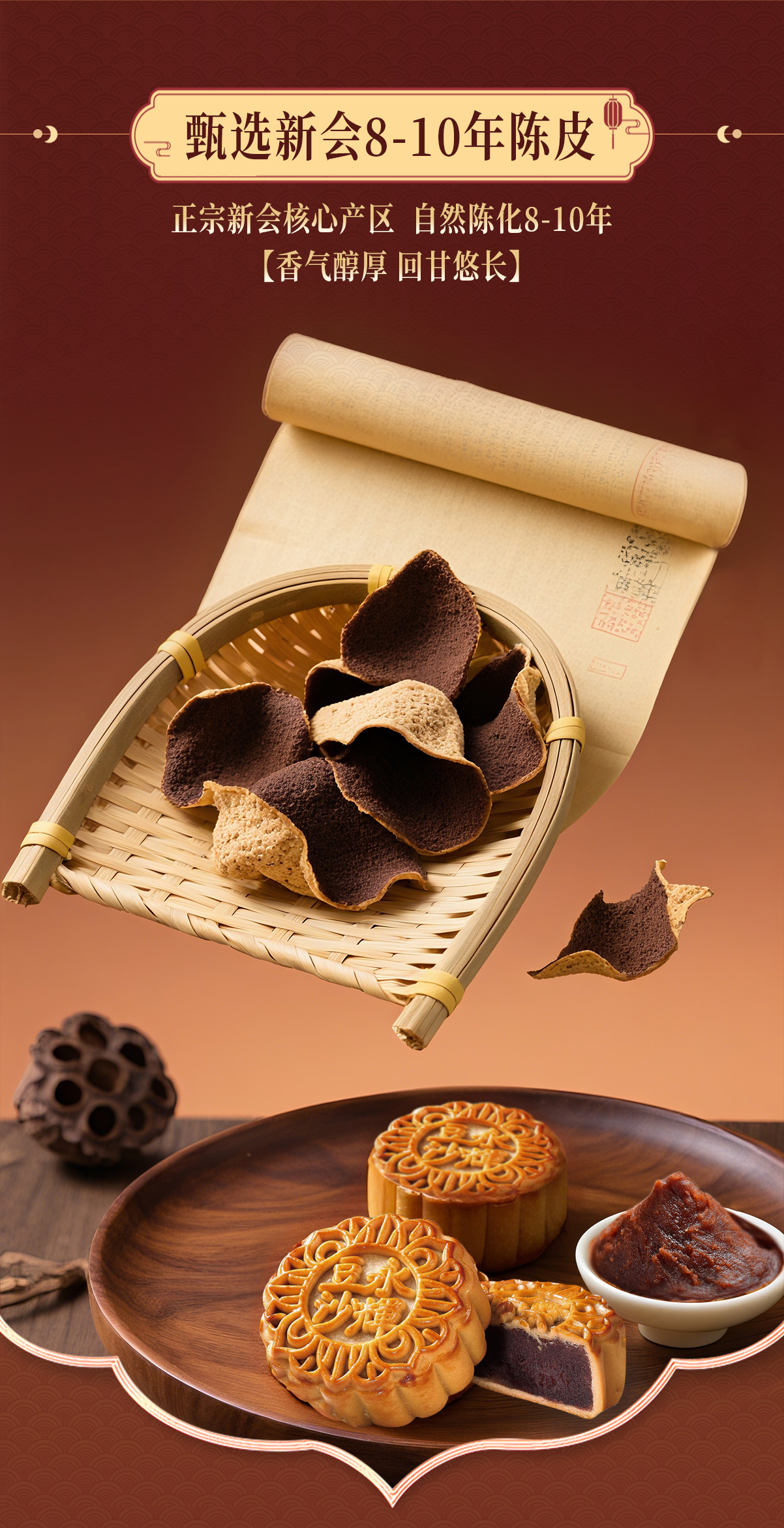 低蔗糖陈皮味豆沙月饼500g*2盒