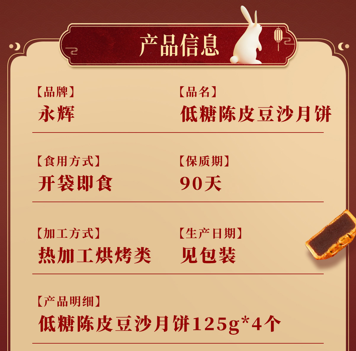 低蔗糖陈皮味豆沙月饼500g*1盒