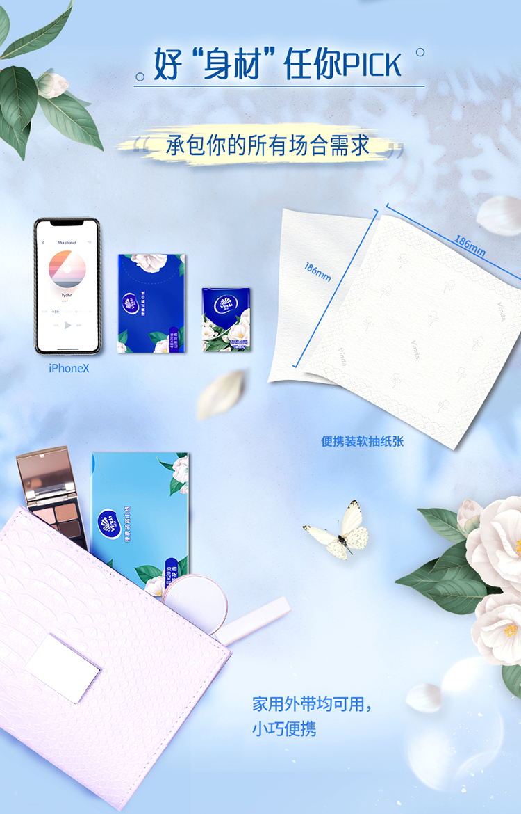 【10包】维达山茶花香纸巾大包手帕纸便携干湿两用卫生纸便携式抽纸