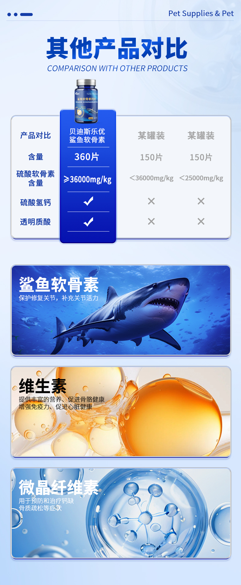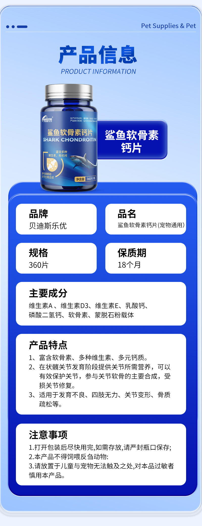 【贝迪斯乐优】鲨鱼软骨素片宠物健骨补钙呵护壮骨