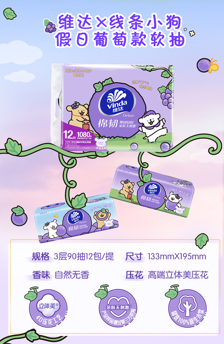 标题:超萌超实用,维达葡萄小狗抽纸让家更温馨! 正文: