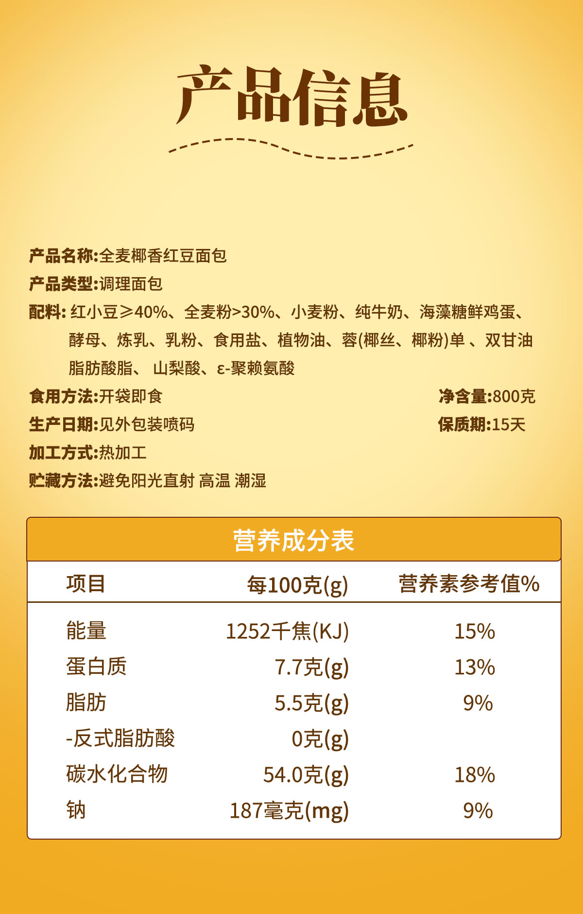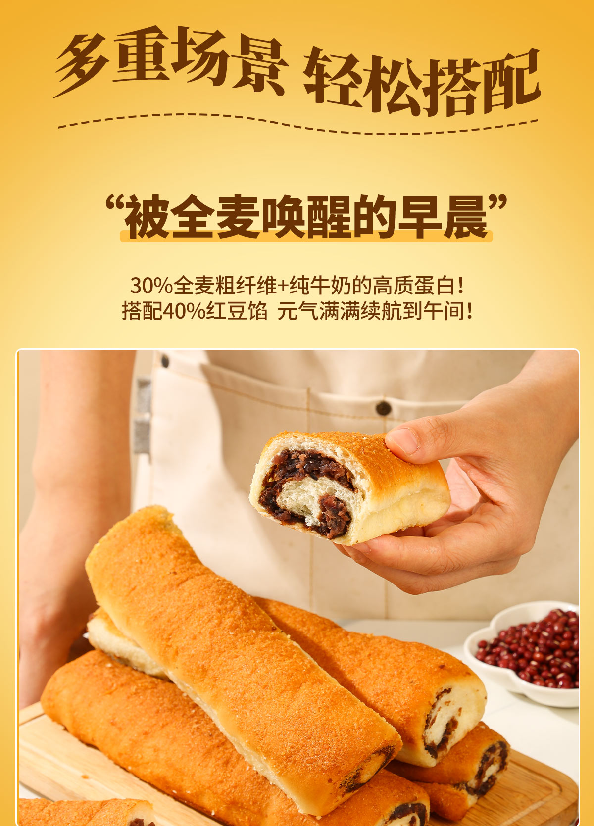 赶时间时随手拿一包,配杯黑咖啡就是完美早餐。全麦面包比普通款更扛饿,红豆椰香让口感不单调。独立包装干净卫生,放包里当加餐也很方便。19.9元的价格太良心了,会长期回购!