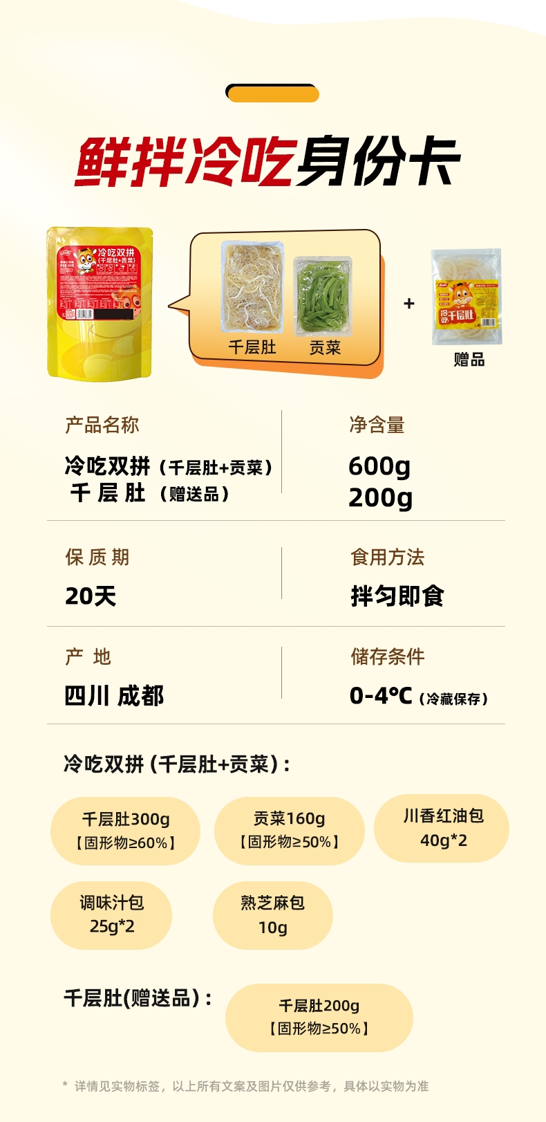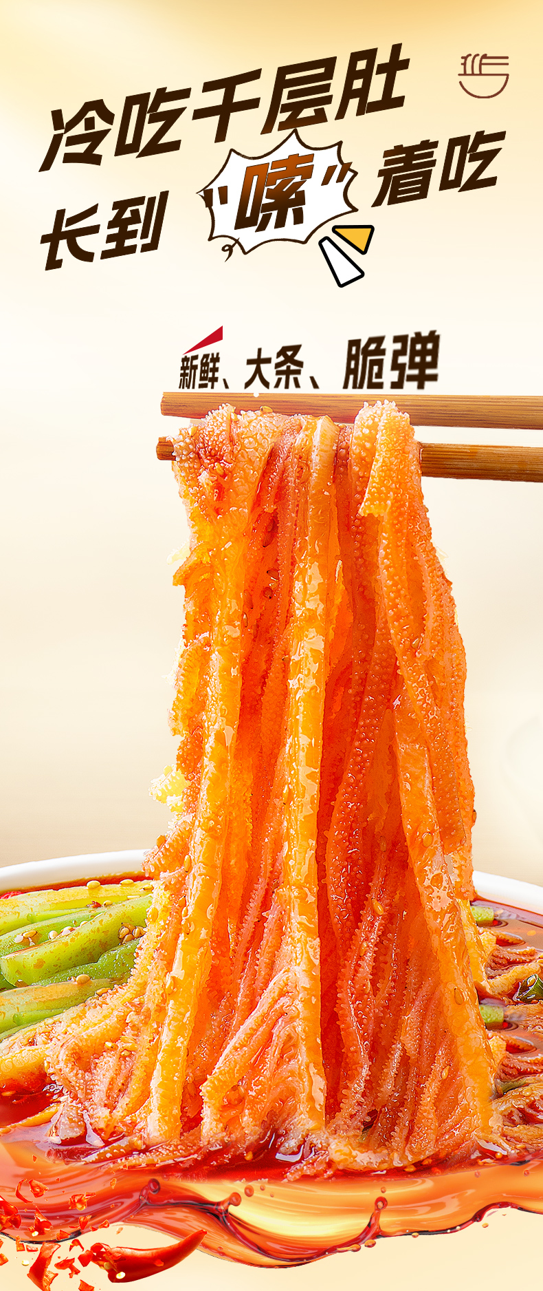 - ¥29.90800g(600g冷吃双拼+200g千层肚),香辣红油味